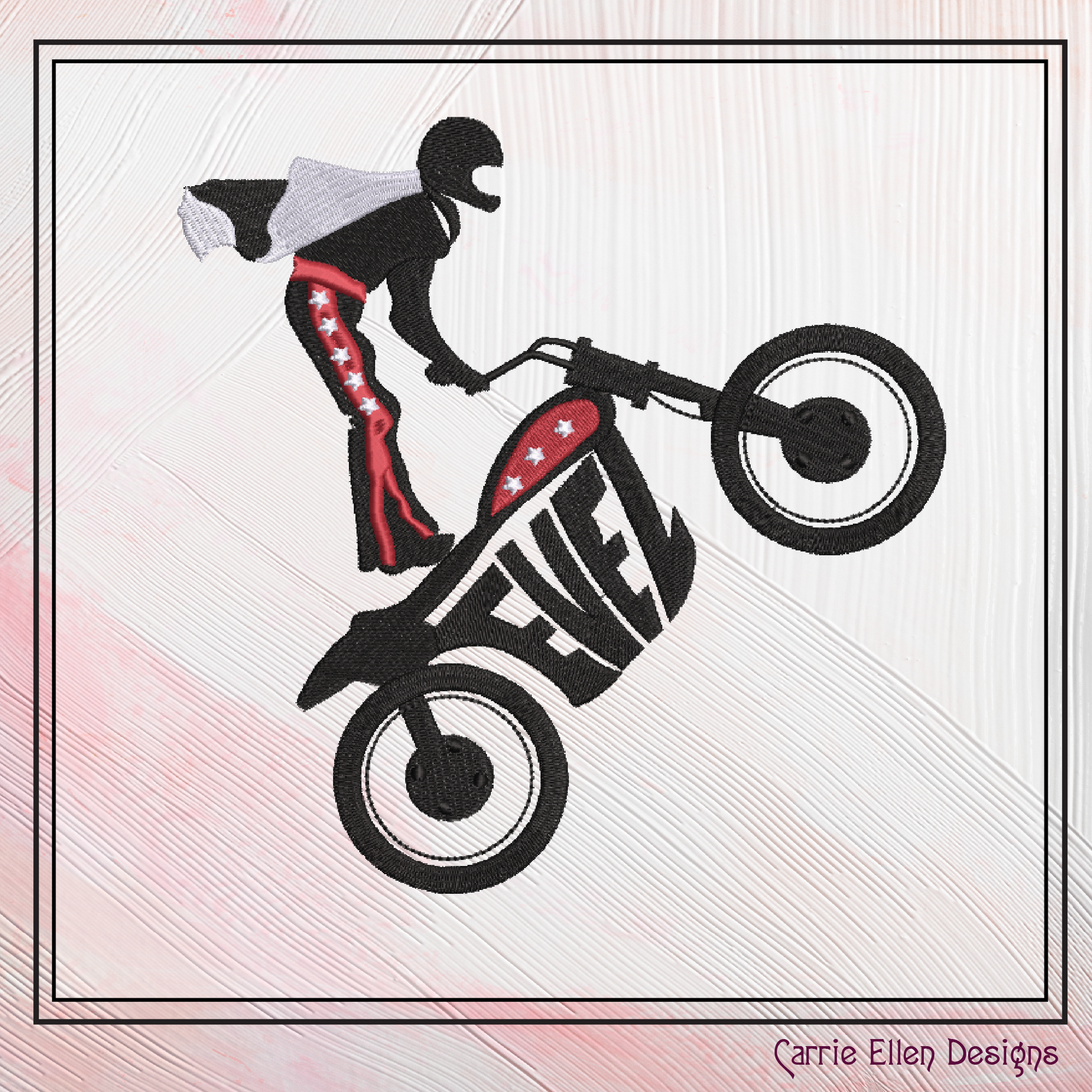 Stunt Bike and Rider Machine Embroidery Design – Extreme Sports Motocross Fan Art, 6 Sizes (2625)