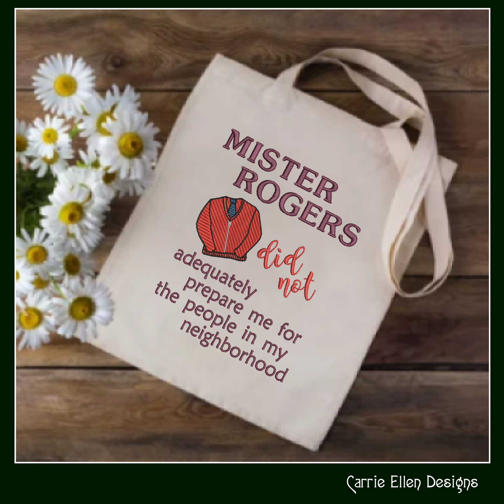Bring nostalgic charm and a touch of humor to your next project with this Mr. Rogers Neighborhood Machine Embroidery Design! Featuring the iconic red cardigan sweater and a playful twist on a classic saying, this design is perfect for fans of wholesome TV, retro pop culture, and cozy good vibes. Great for stitching on sweatshirts, tote bags, or gifts that bring a smile to your "neighborhood."