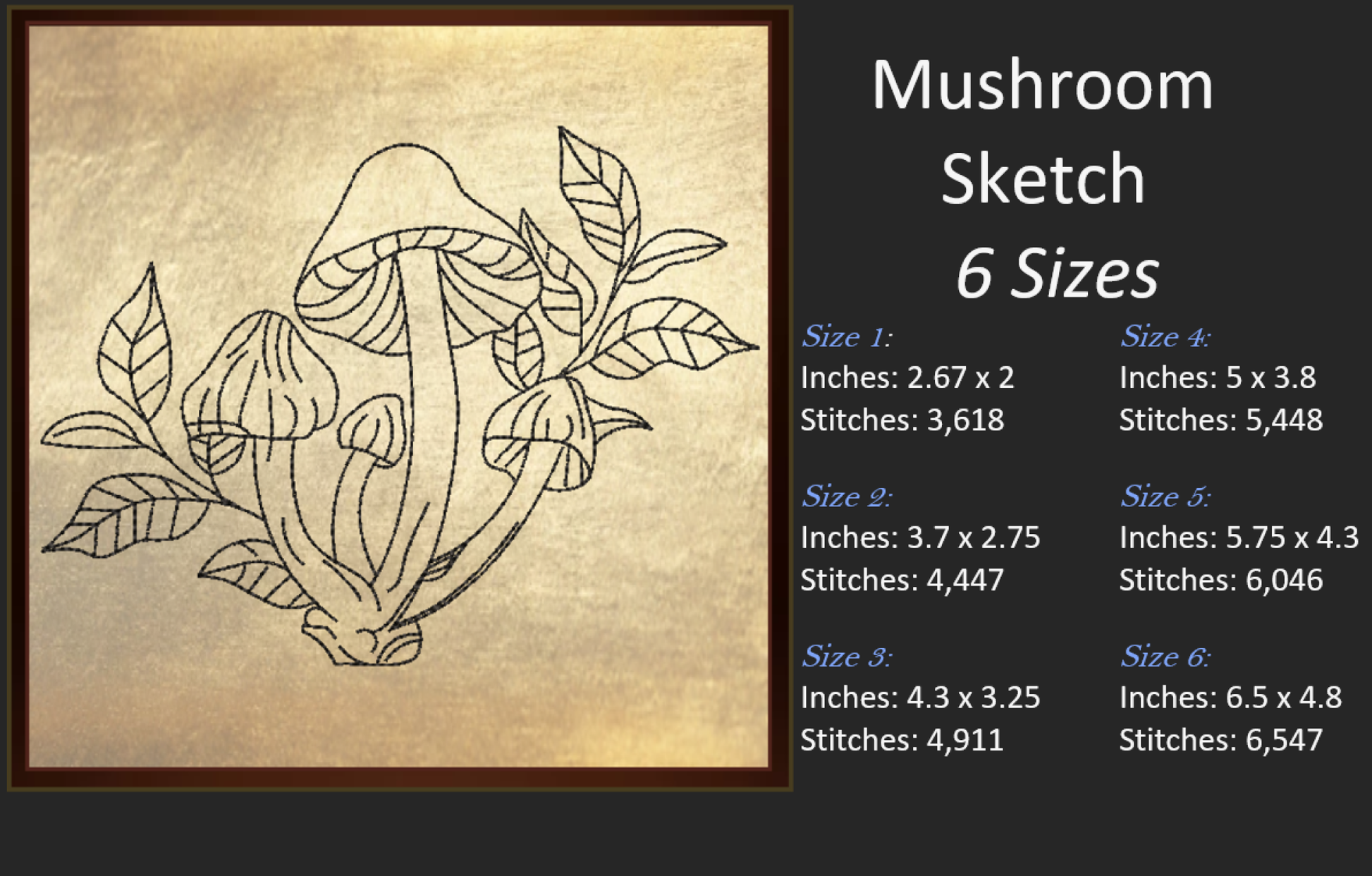 Mushroom Machine Embroidery Design Sketch, Wild Mushroom Line Art Outline, Mushroom Garden, 6 Sizes (0248)