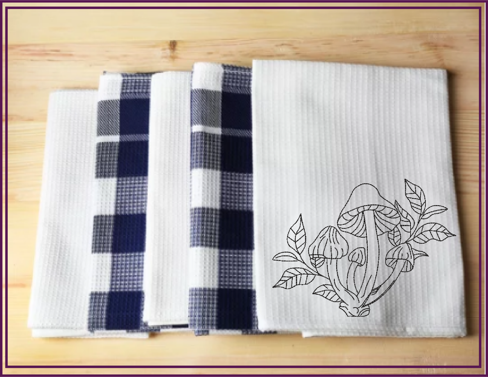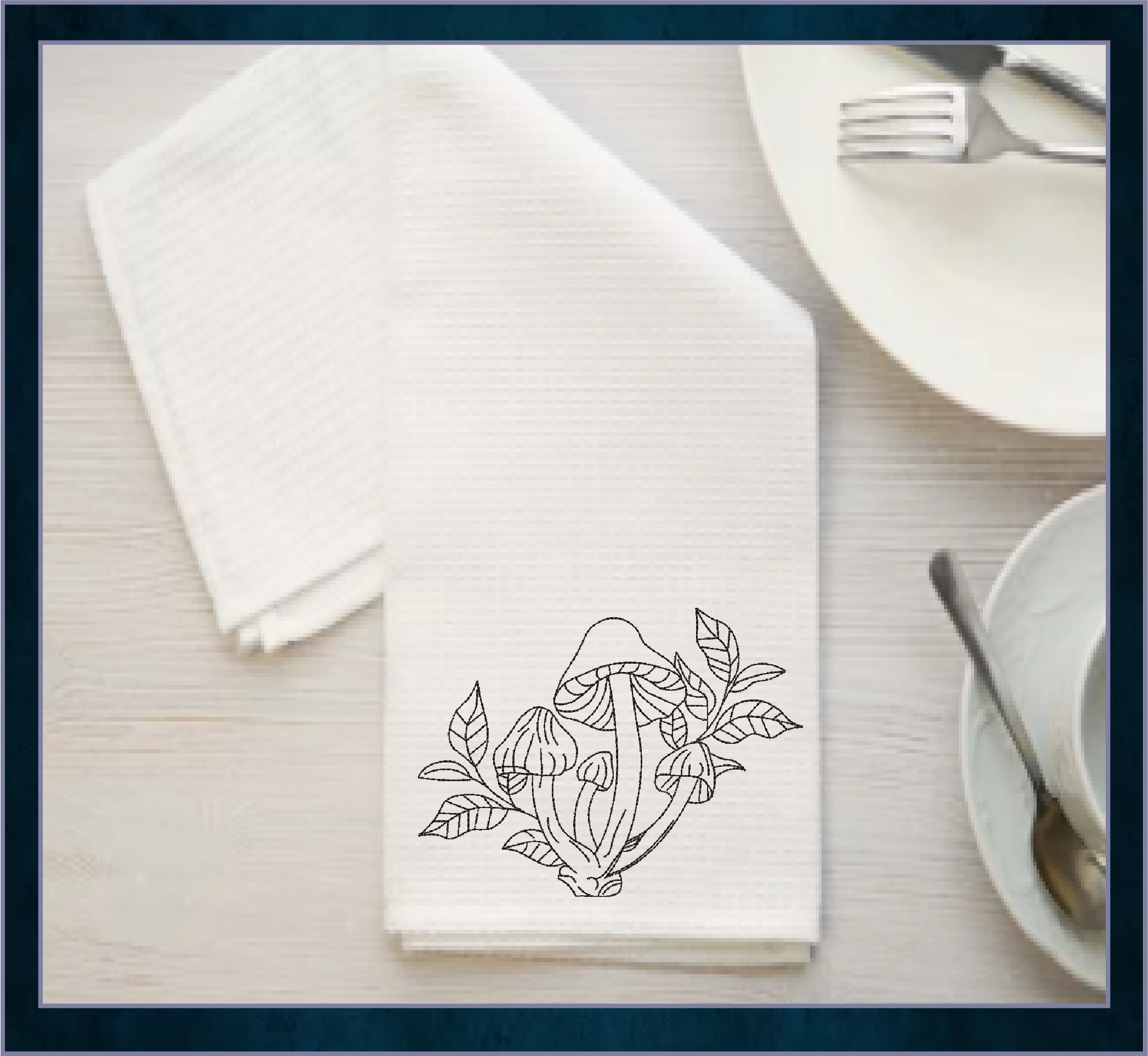 Step into a woodland daydream with this Wild Mushroom Machine Embroidery Sketch Design. The hand-drawn line art captures a charming cluster of wild mushrooms, evoking the feel of classic botanical illustrations. Perfect for adding rustic, earthy vibes to aprons, tea towels, or garden-themed linens.