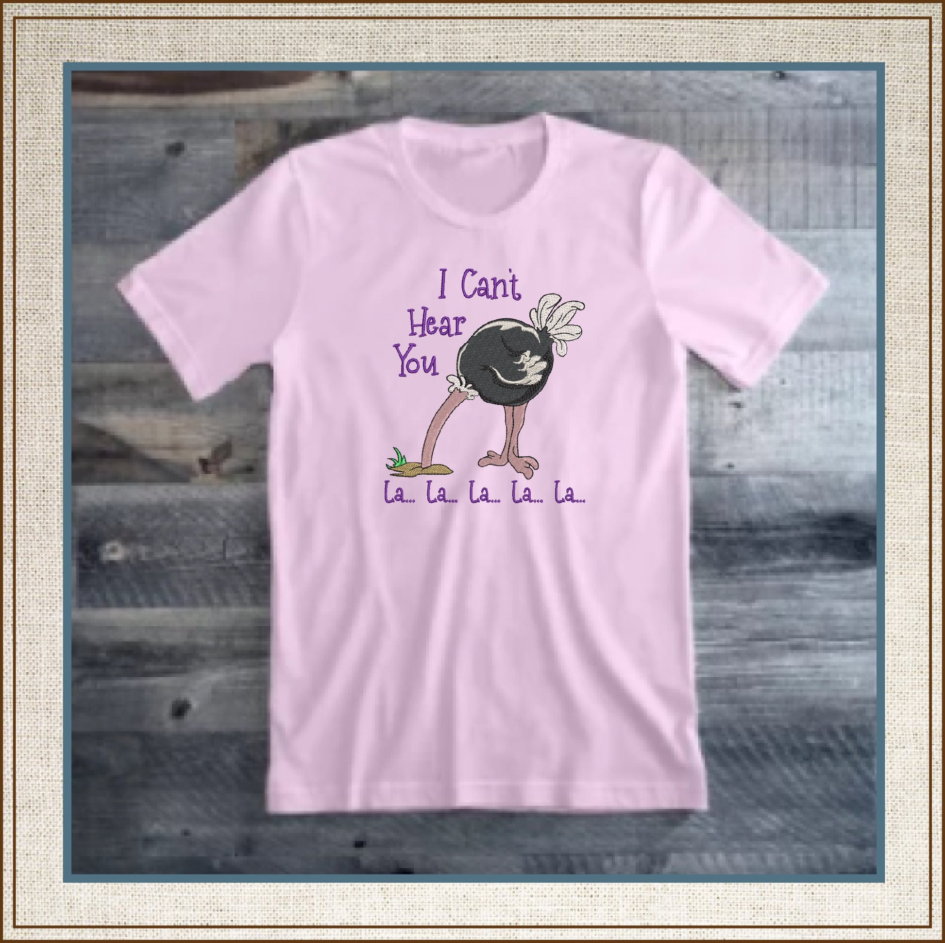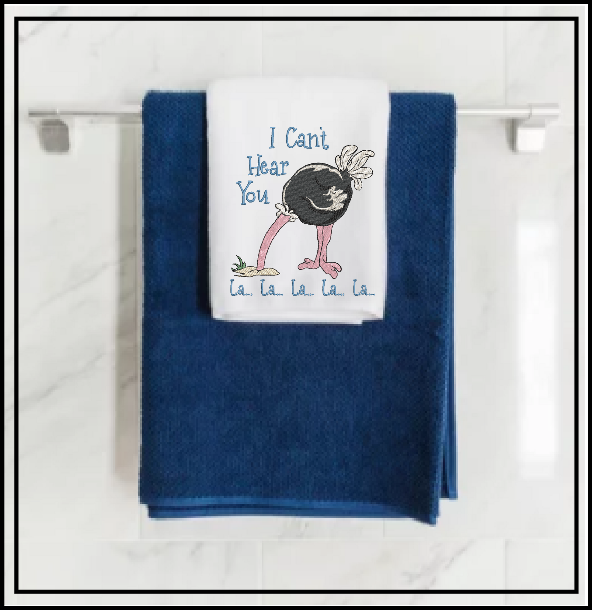 I Can’t Hear You Ostrich Embroidery Design – Head in the Sand Saying – Funny Bird Machine Embroidery File, 6 Sizes (0674)