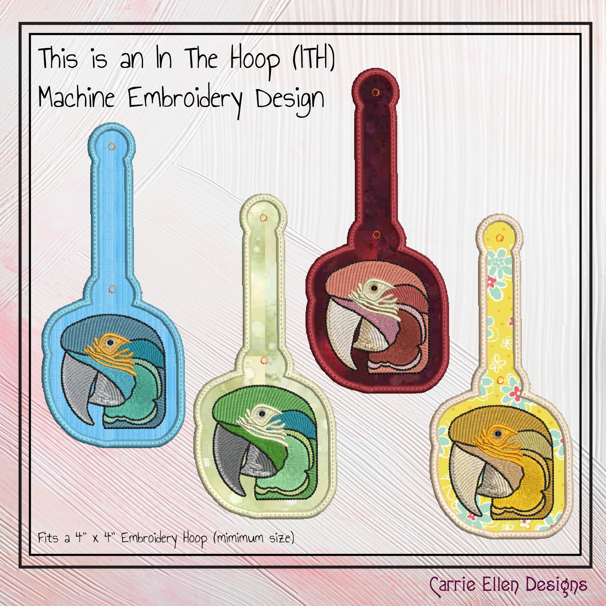Bring a burst of tropical color to your accessories with this Parrot ITH Key Fob Machine Embroidery Design! Perfect for bird lovers and machine embroidery enthusiasts, this vibrant parrot keychain design is created fully In-The-Hoop for a polished and professional finish.