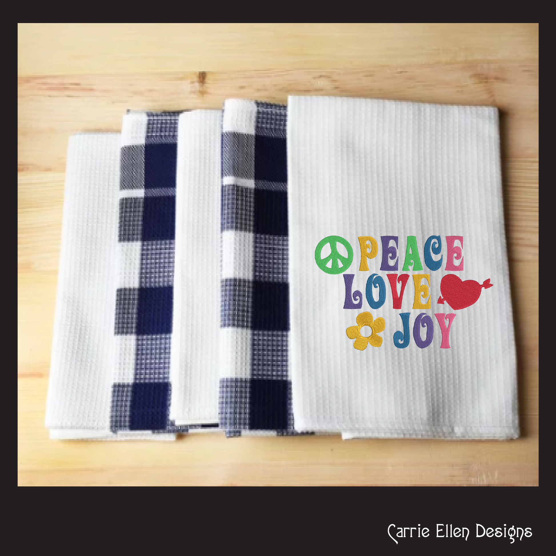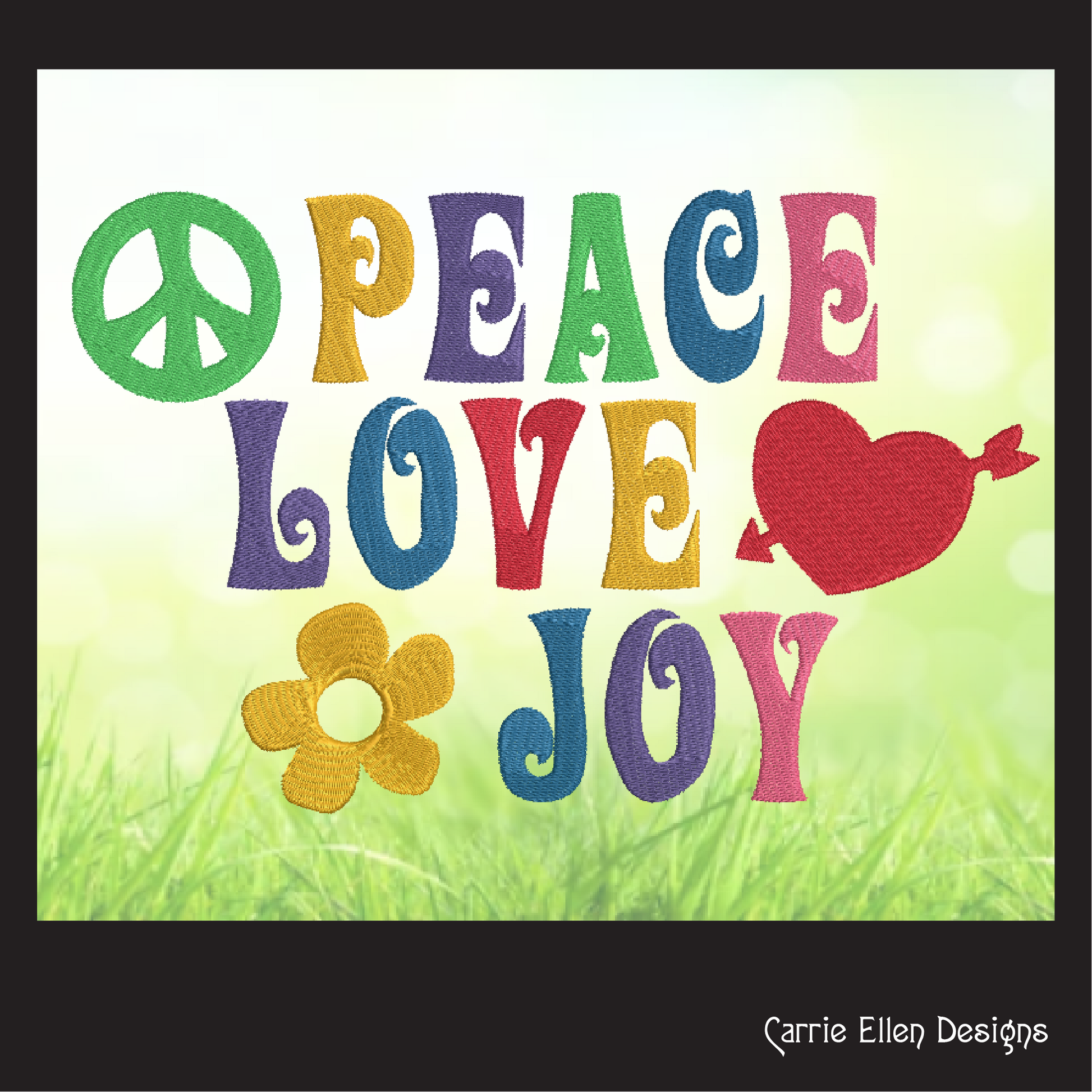 Peace Love Joy Applique Machine Embroidery Design – Hippie 70s Retro Vintage Boho Design (1008)