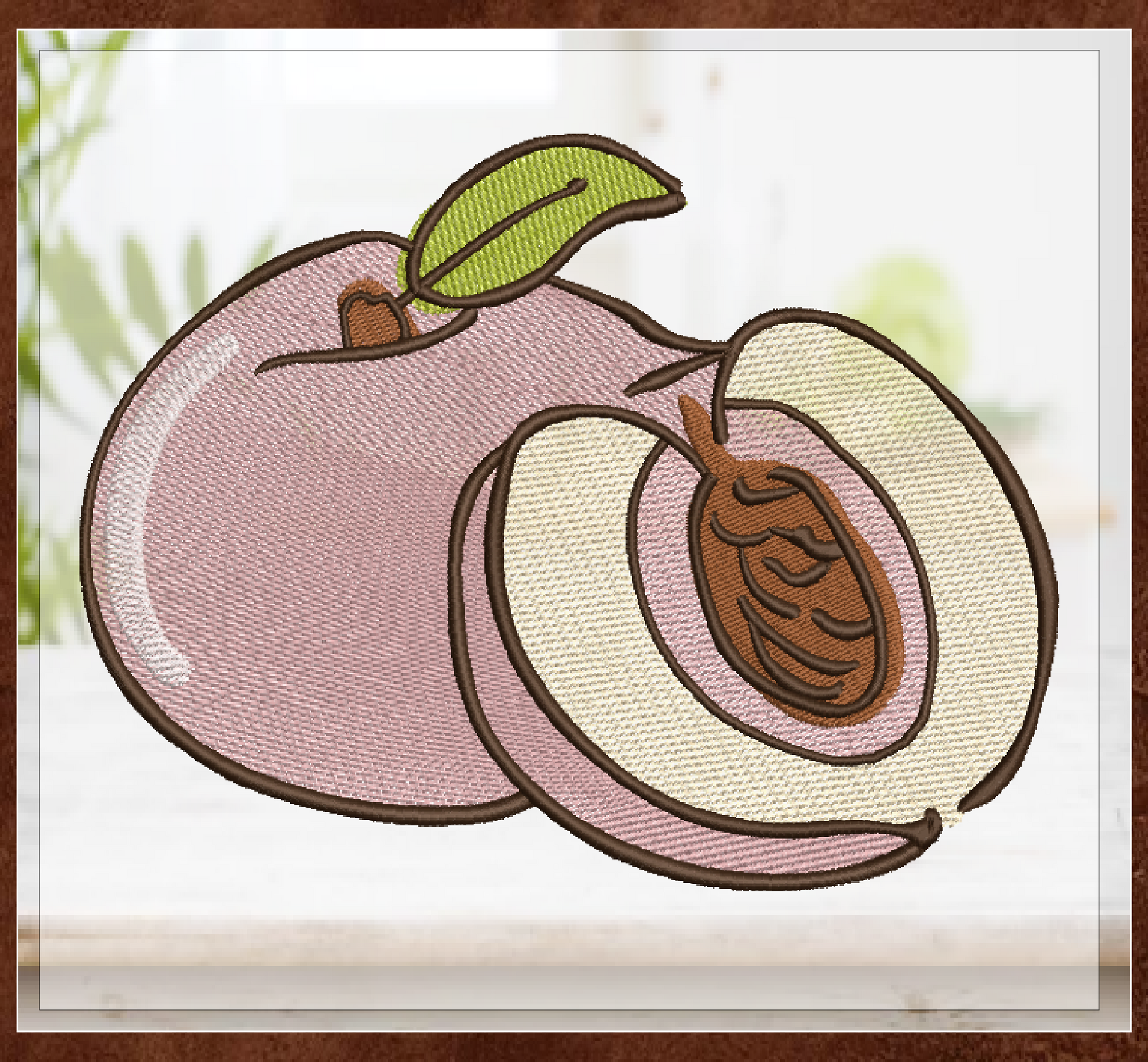 With 8 sizes available, this design is versatile enough to fit any embroidery project, from small accessories to larger home décor items. The clean and crisp lines of the peach design make it a timeless addition to your collection, ideal for anyone who loves the flavors of summer and the natural beauty of orchard fruits.
