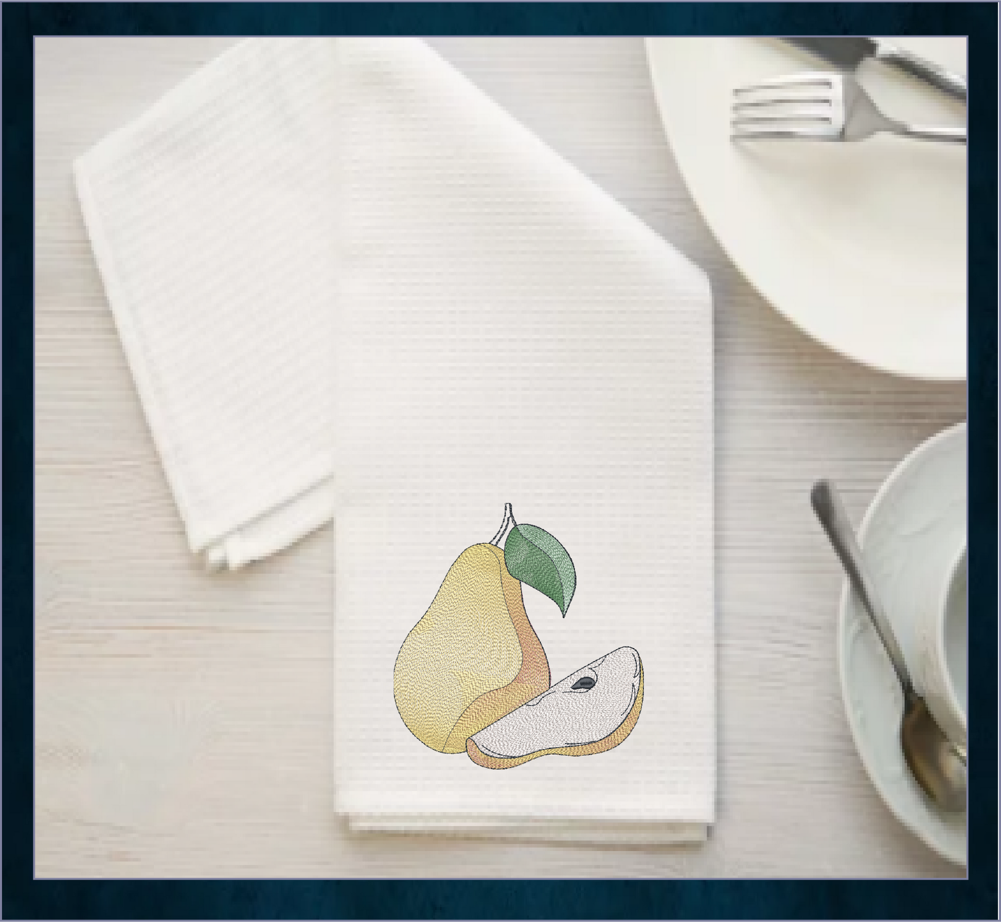 Fresh Pears Machine Embroidery Design | Summer Fruit Embroidery | Orchard Fruits Design | 8 Sizes (0967)