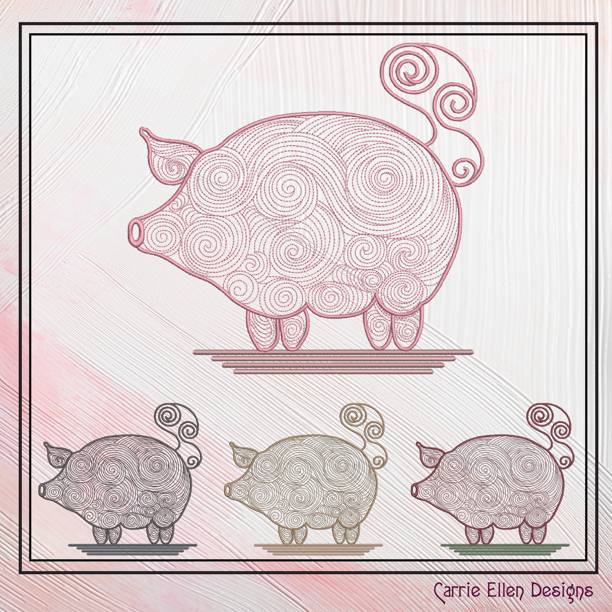 Artistic Pig Machine Embroidery Design, Artistic Pig Swirling Line Art Sketch Design, Farm Animals, 6 sizes (2530)