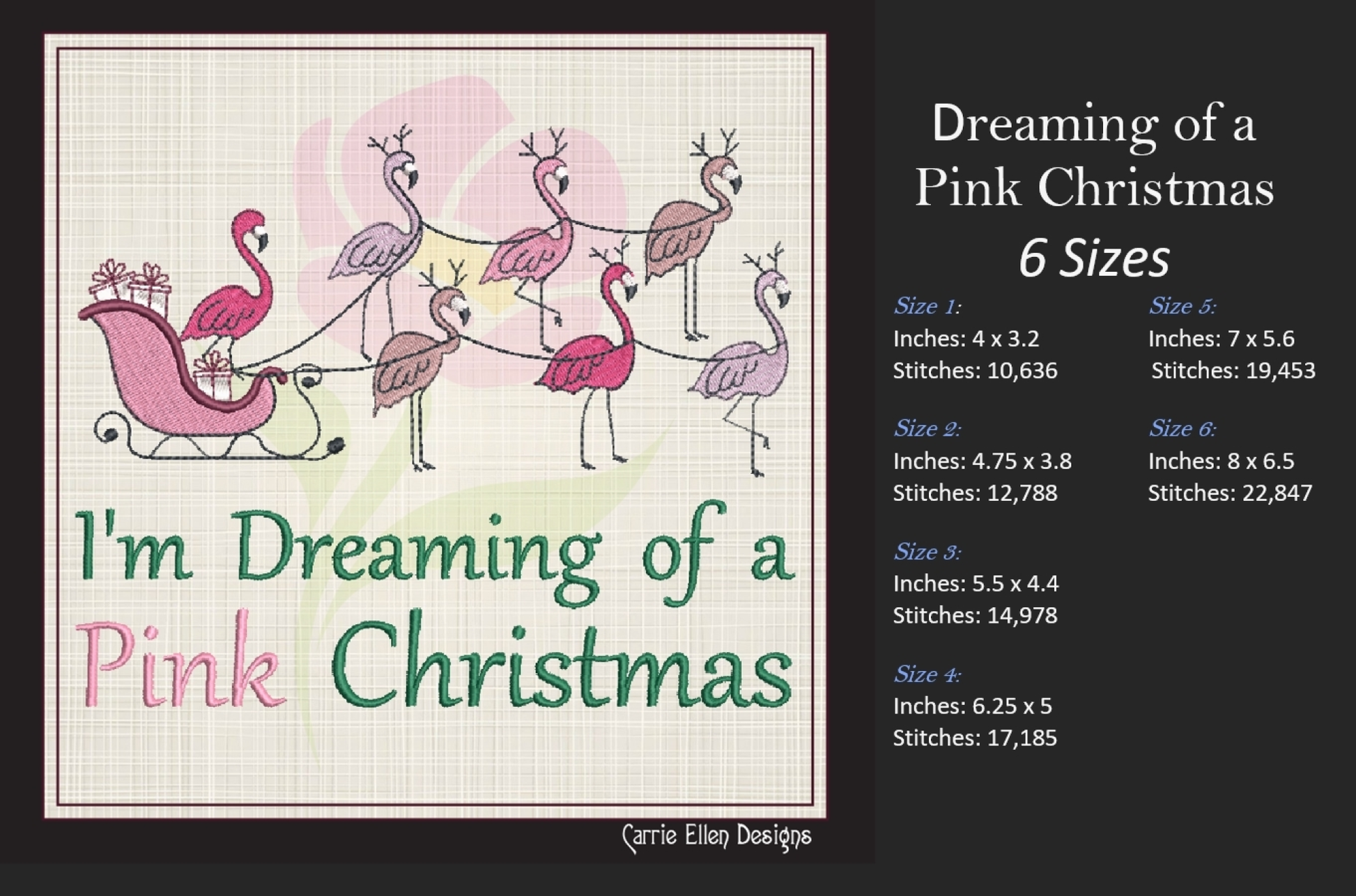 Dreaming of a Pink Christmas Machine Embroidery Design | Flamingo Holiday Saying | Tropical Christmas Embroidery | 6 Sizes (0862)