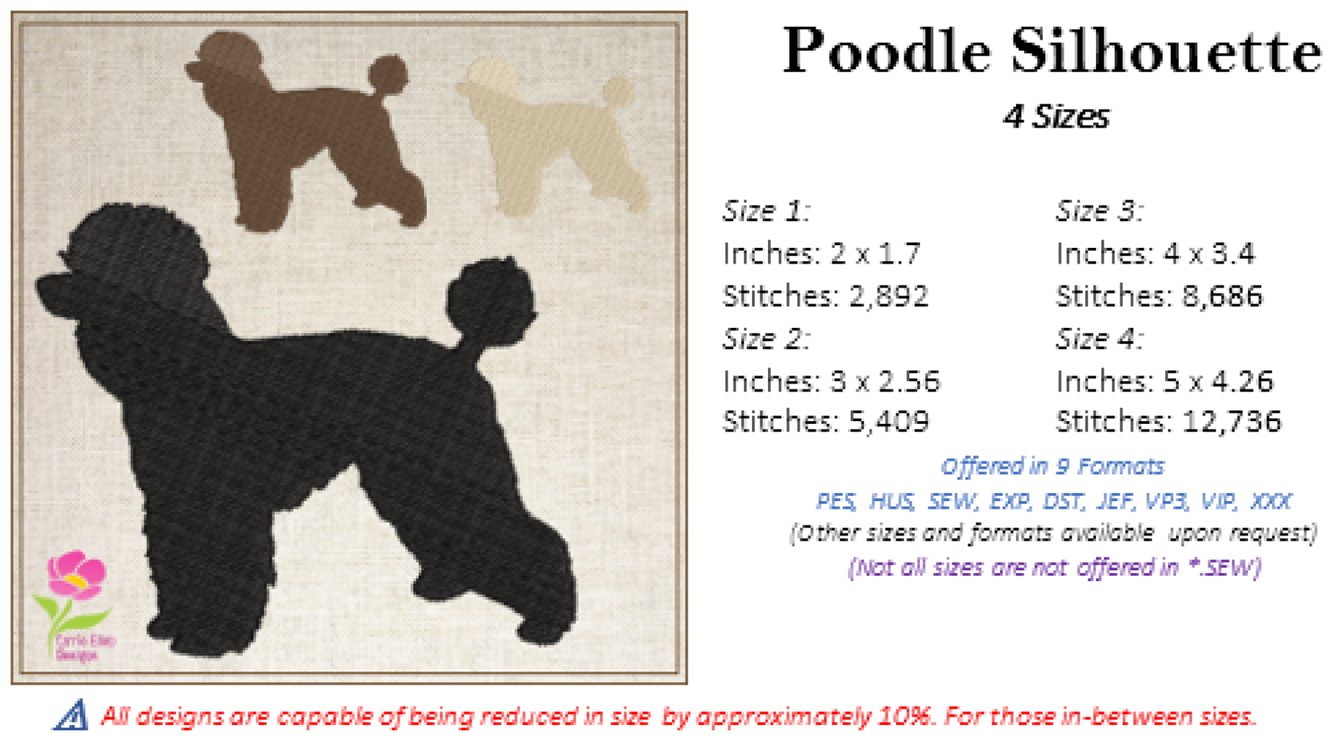 Add a touch of elegance to your embroidery projects with this Poodle Silhouette Machine Embroidery Design. Featuring the graceful outline of a poodle, this design is perfect for any dog lover or pet-themed creation. With 4 available sizes, it’s versatile and ready to elevate everything from apparel to home décor.