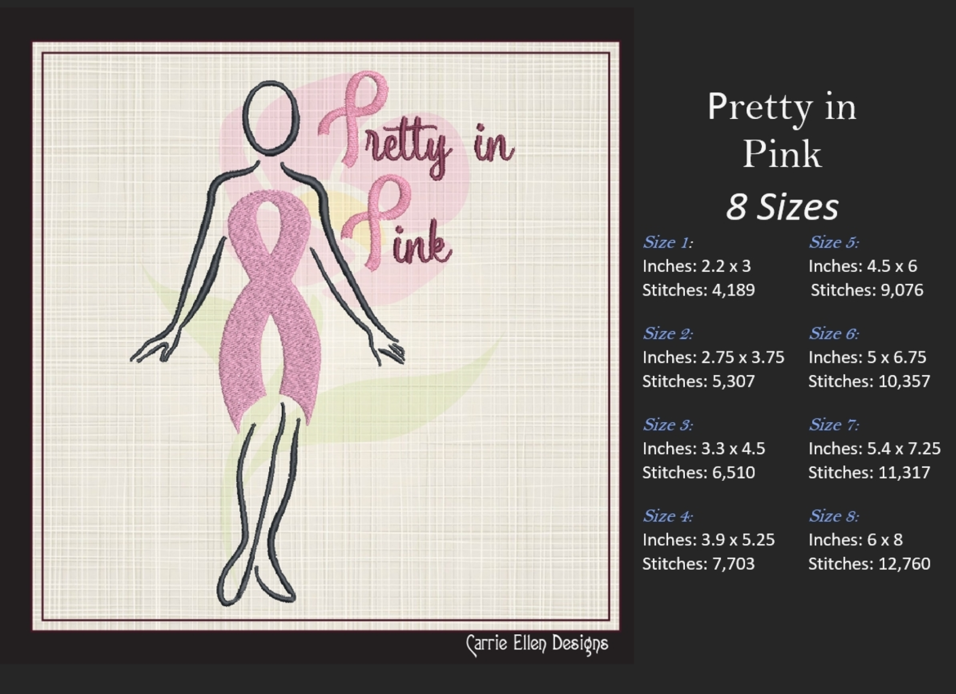 Pretty in Pink Breast Cancer Embroidery Design – Cancer Awareness Support, 8 Sizes (1083)