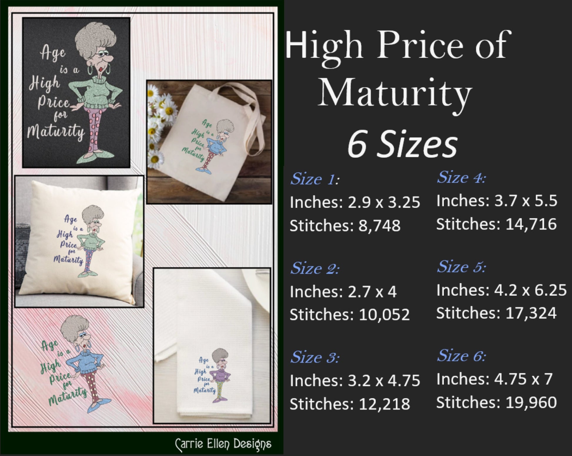 Funny Machine Embroidery Design | "Age is a High Price for Maturity" Humorous Quote | Sarcastic Saying Embroidery for Adults | 6 Sizes (1906)