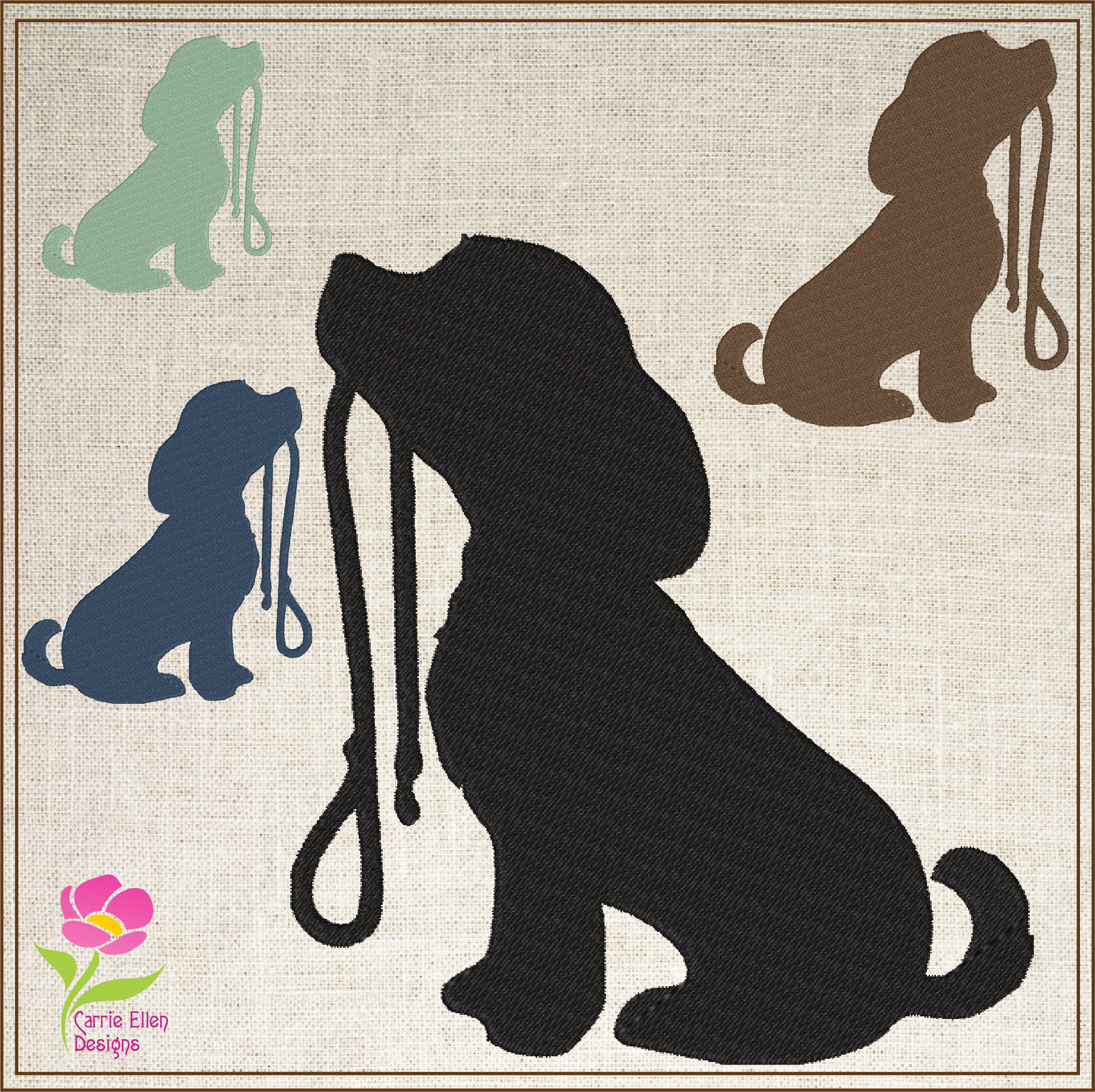Puppy with Leash Silhouette Machine Embroidery Design | Pet Dog Animal Embroidery Design | 4 Sizes (0581)