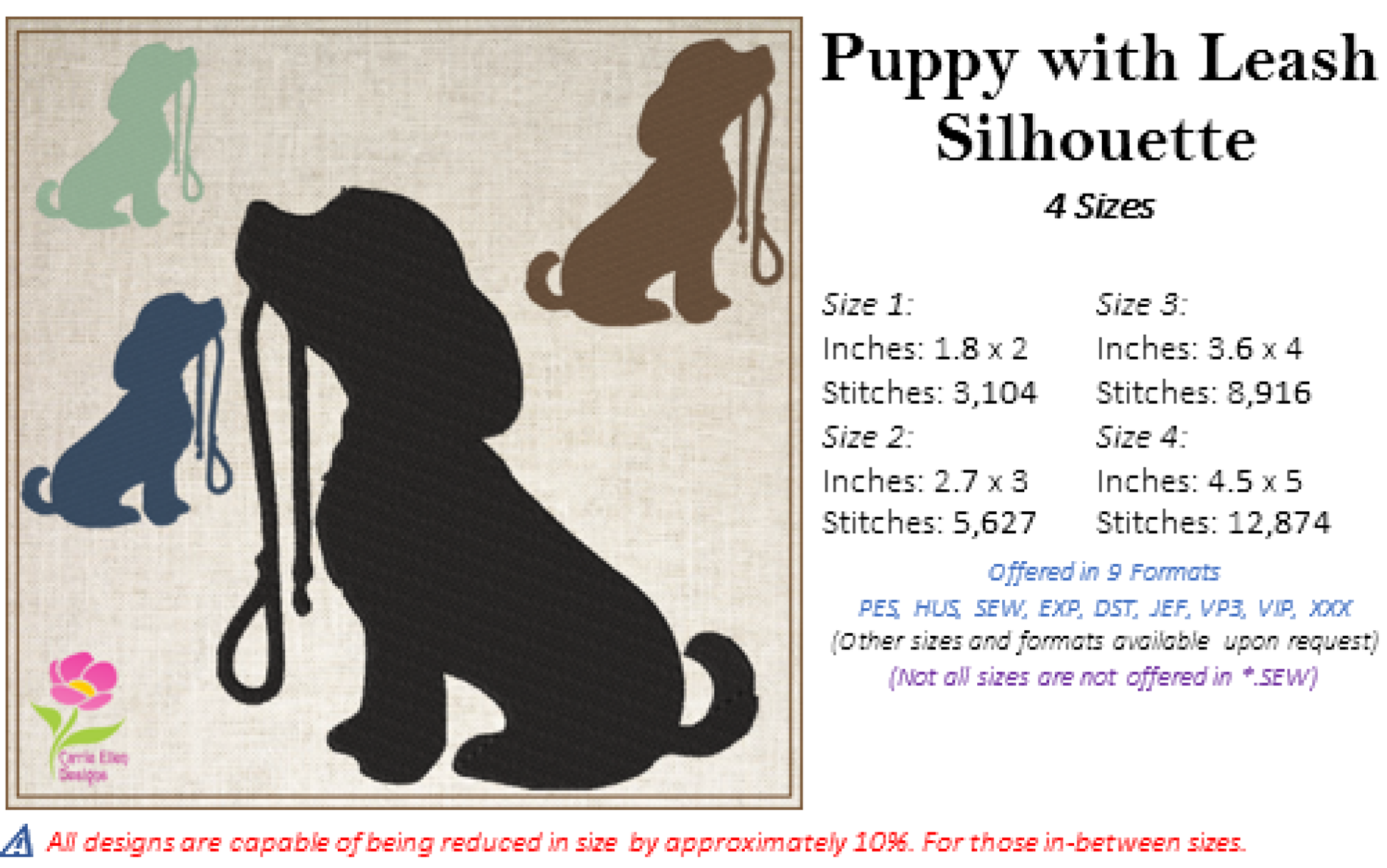 Add a touch of elegance to your embroidery projects with this Puppy with Leash Silhouette Machine Embroidery Design. Featuring the graceful outline of a Dog, this design is perfect for any dog lover or pet-themed creation. With 4 available sizes, it’s versatile and ready to elevate everything from apparel to home décor.