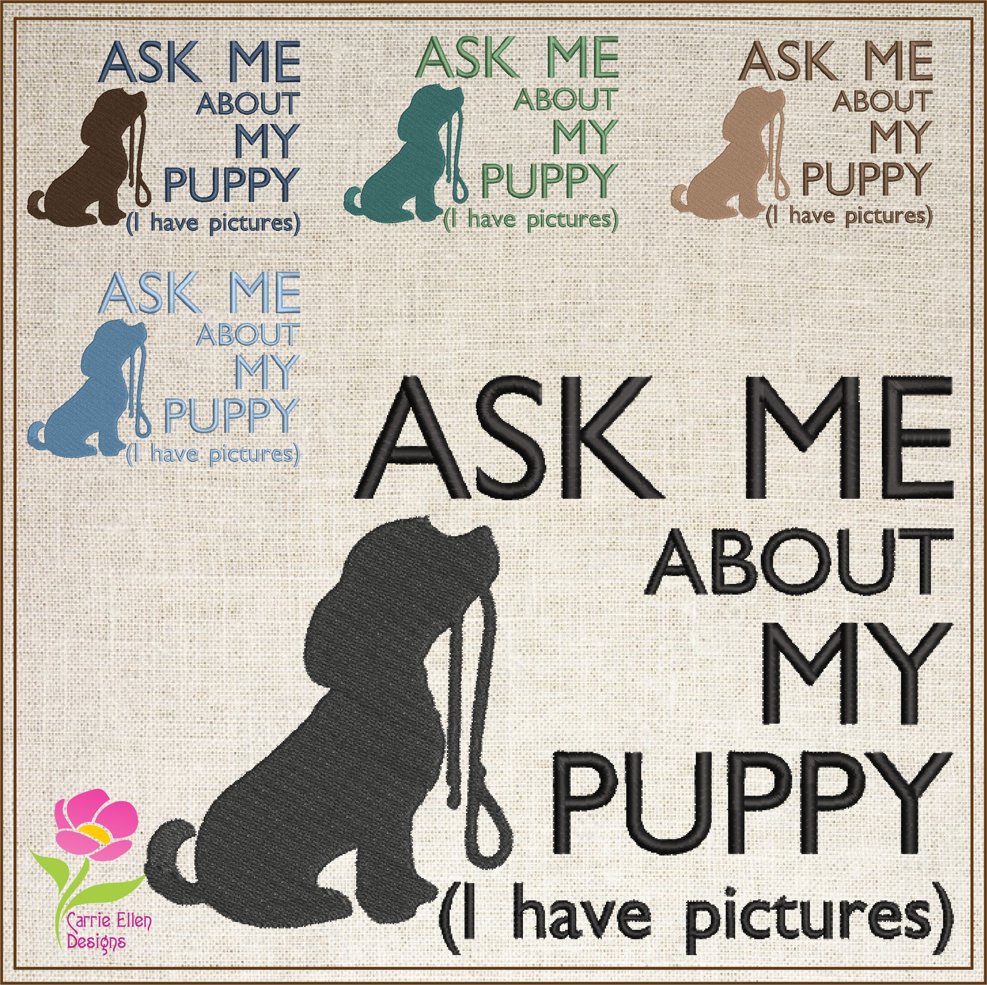 Puppy Dog Machine Embroidery Design | Ask Me About My Puppy Embroidered Sayings | Cute Puppy Dog Quotes | 6 Sizes (0584)