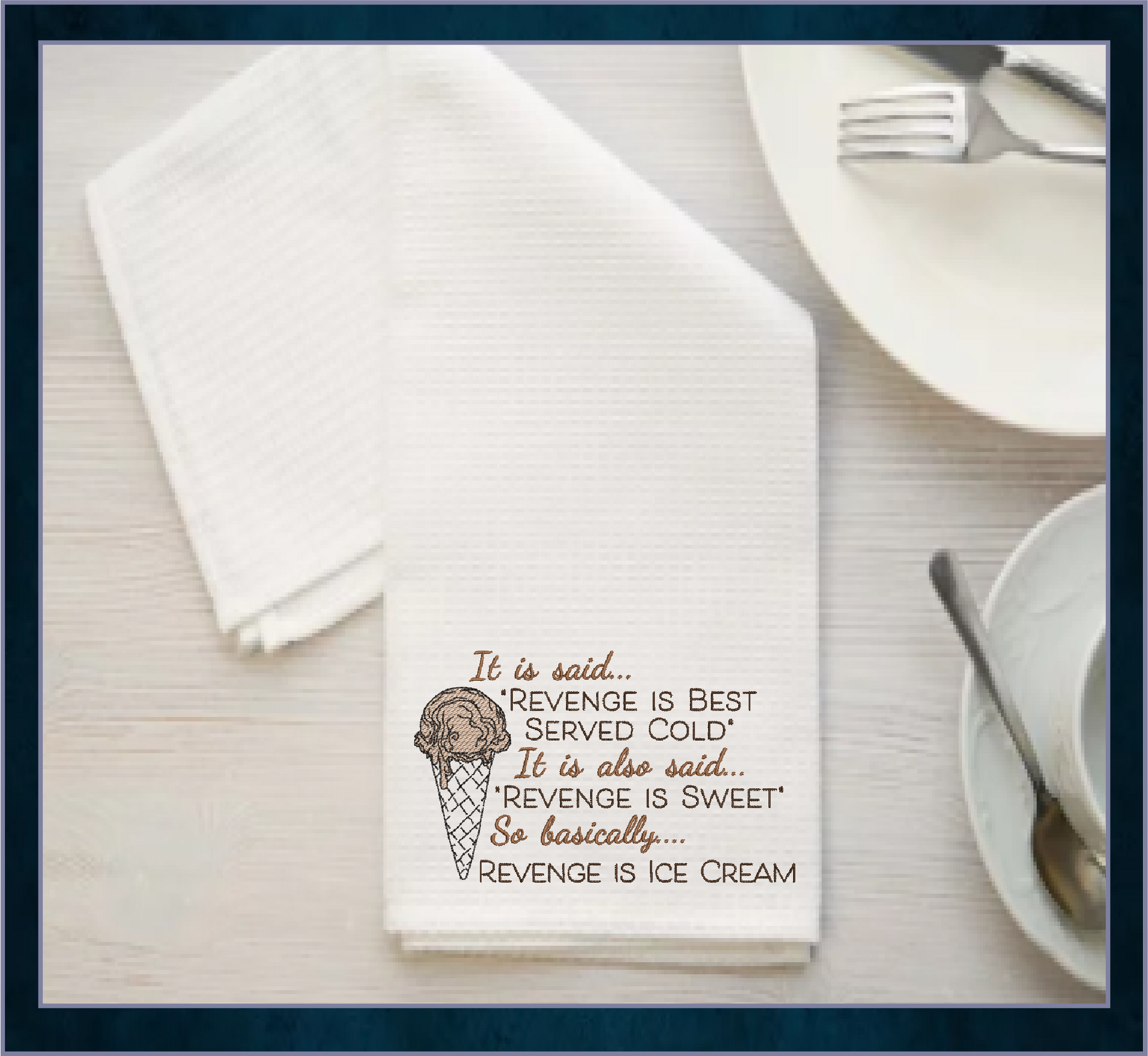 Revenge is Ice Cream Machine Embroidery Design | Served Cold Funny Saying | Humorous Quotes and Sayings | 6 Sizes (0706)