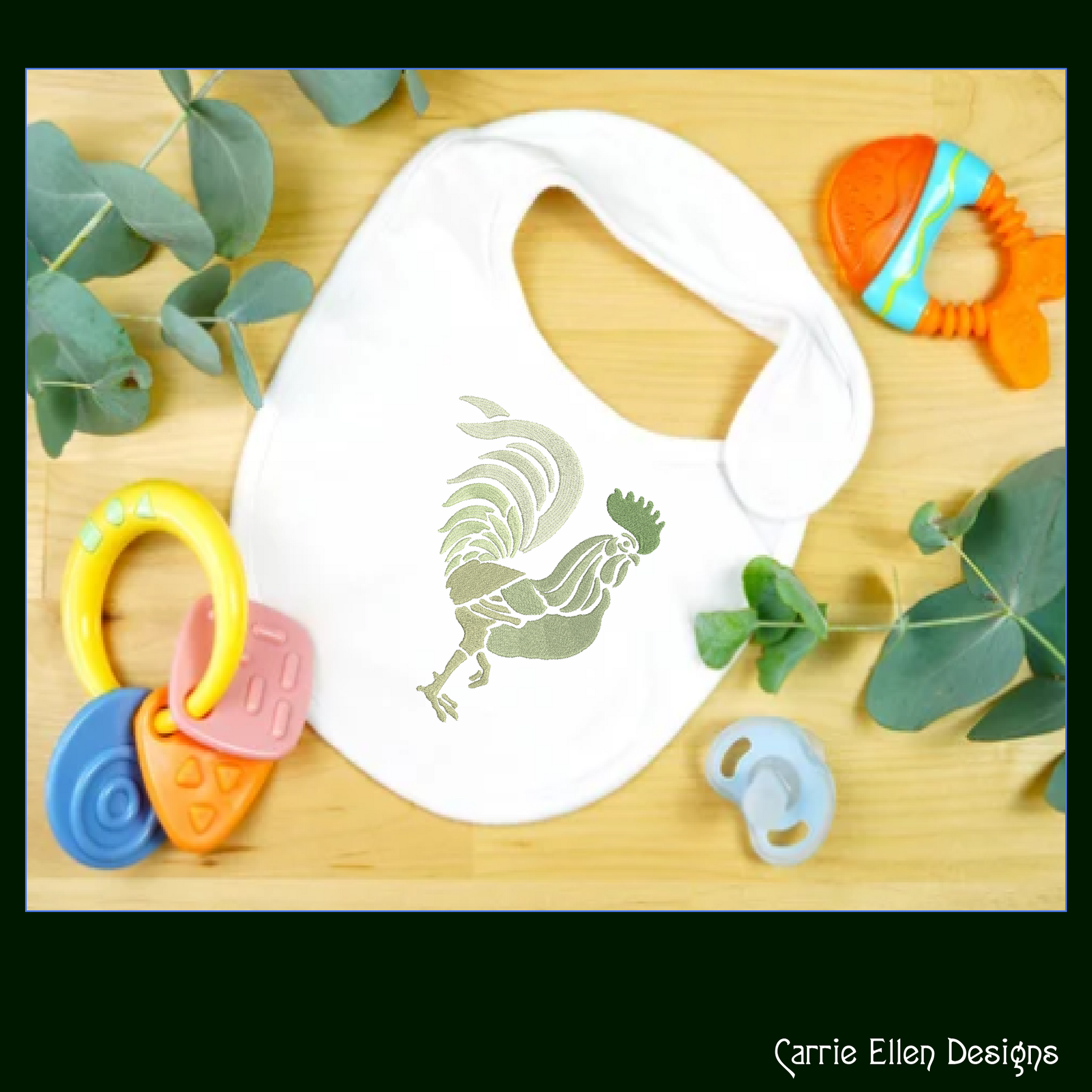 Let this proud rooster add a bold, graphic statement to your next embroidery masterpiece!