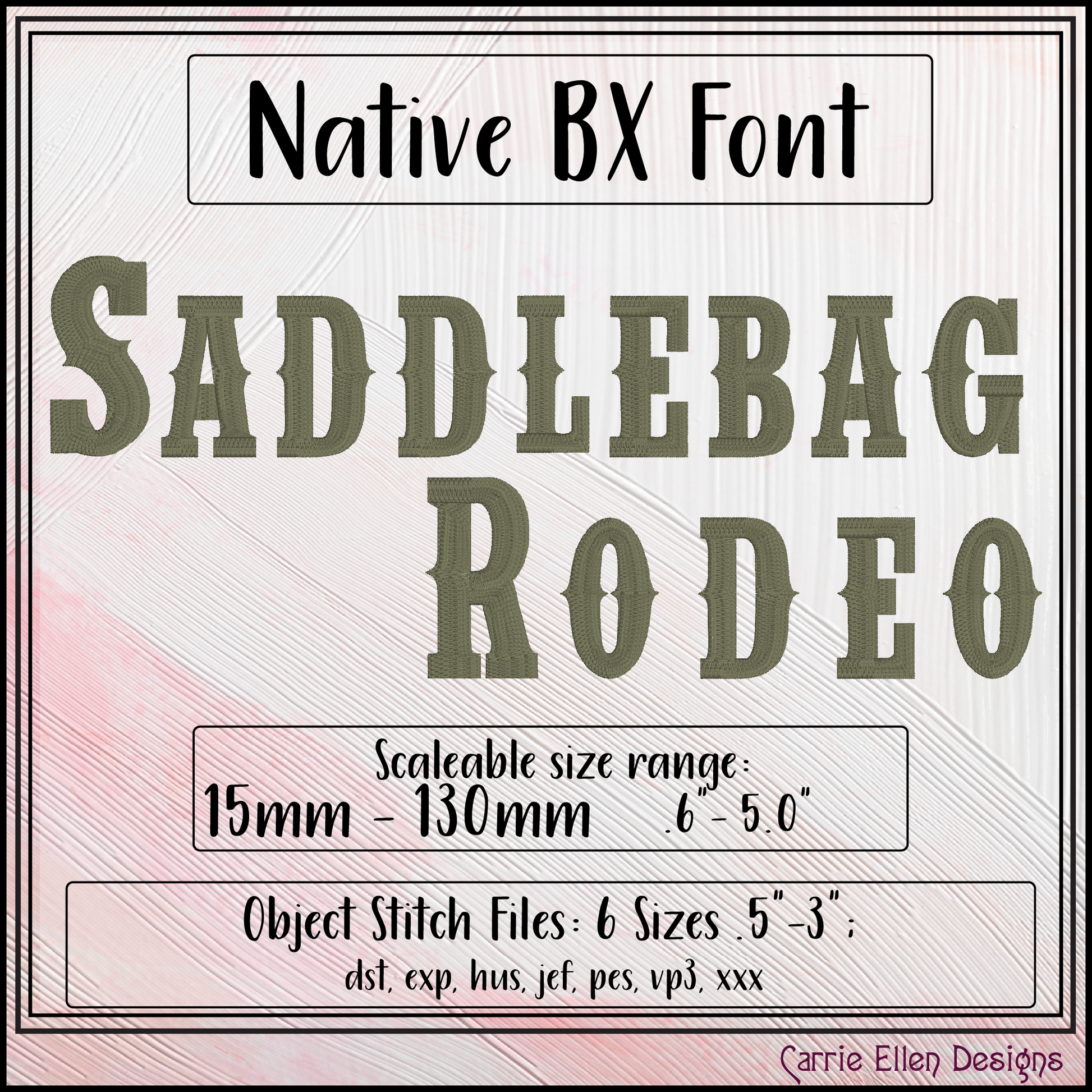 Saddlebag BX Fonts and Lettering Stitch Files, Western Rodeo Alphabet Machine Embroidery (3726)