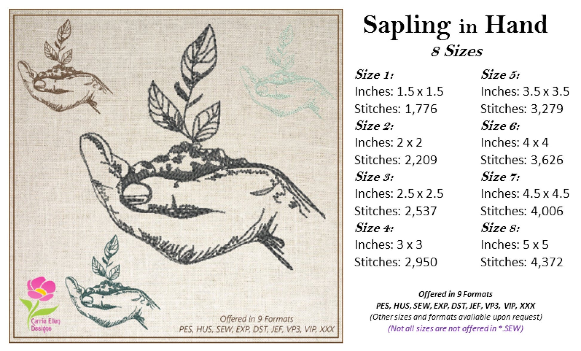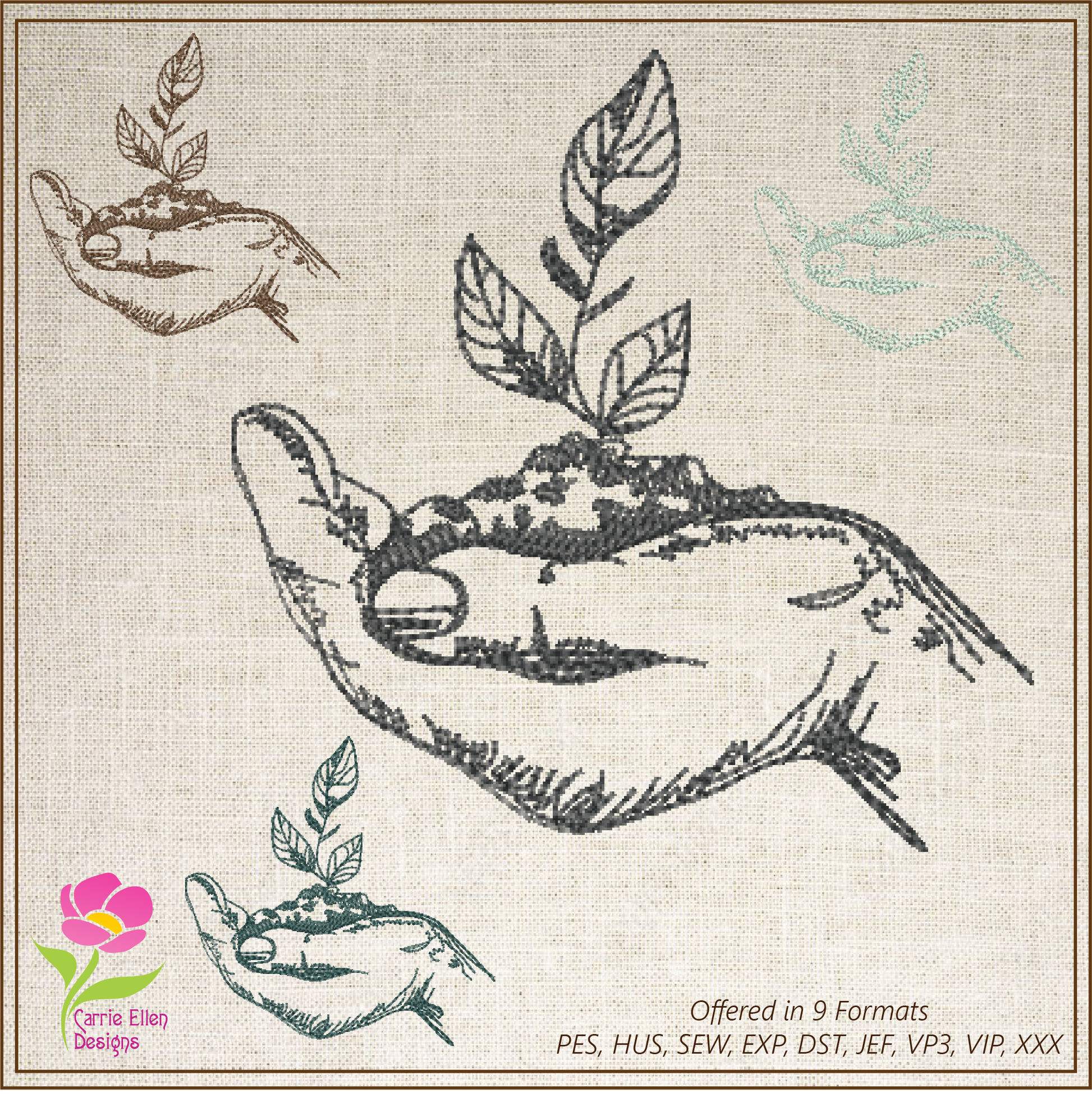 Hand Holding Soil with Plant Sapling Machine Embroidery Design Sketch, Seedling Line Art Design, Seedling Plant Embroidery, 8 Sizes (0250)