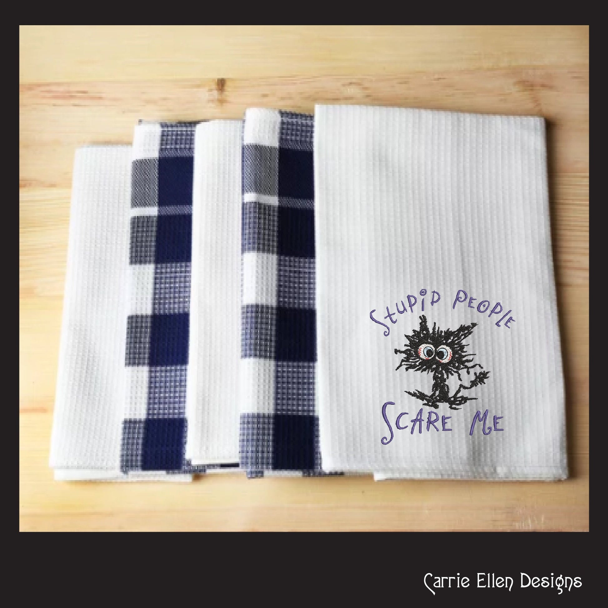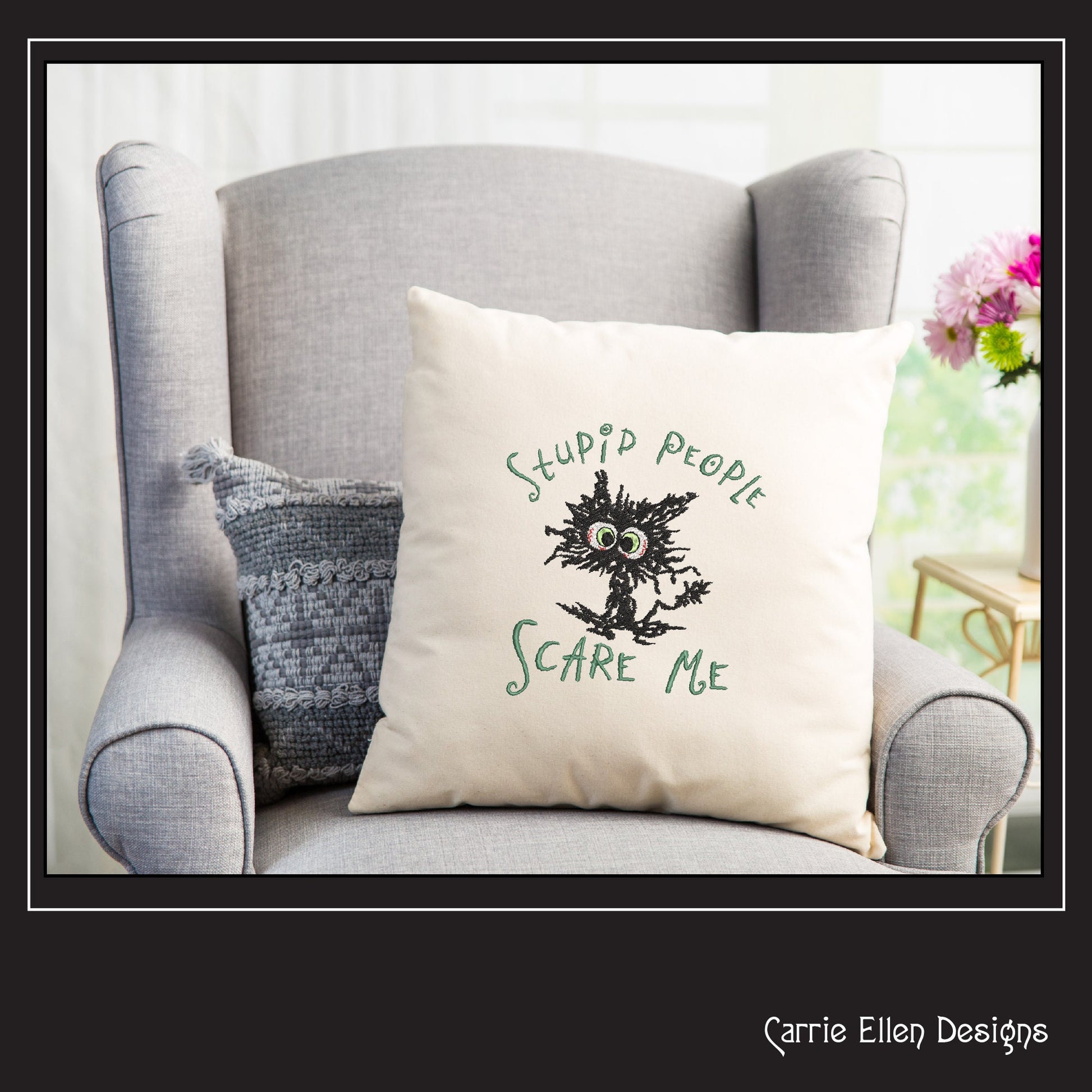 Stupid People Scare Me Cat Machine Embroidery Design | Sarcastic Black Cat Saying | Funny Neurotic Cat Quote | 6 Sizes (1801)