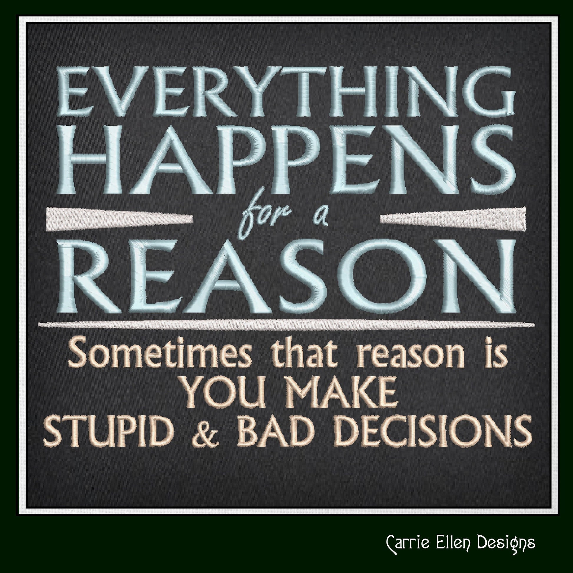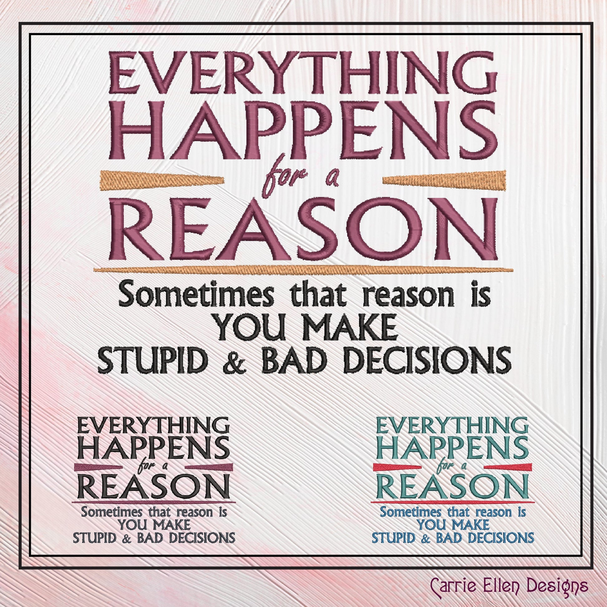 Everything Happens For A Reason Machine Embroidery Design Saying, Sarcastic Funny Embroidery Design, 6 Sizes (2350)