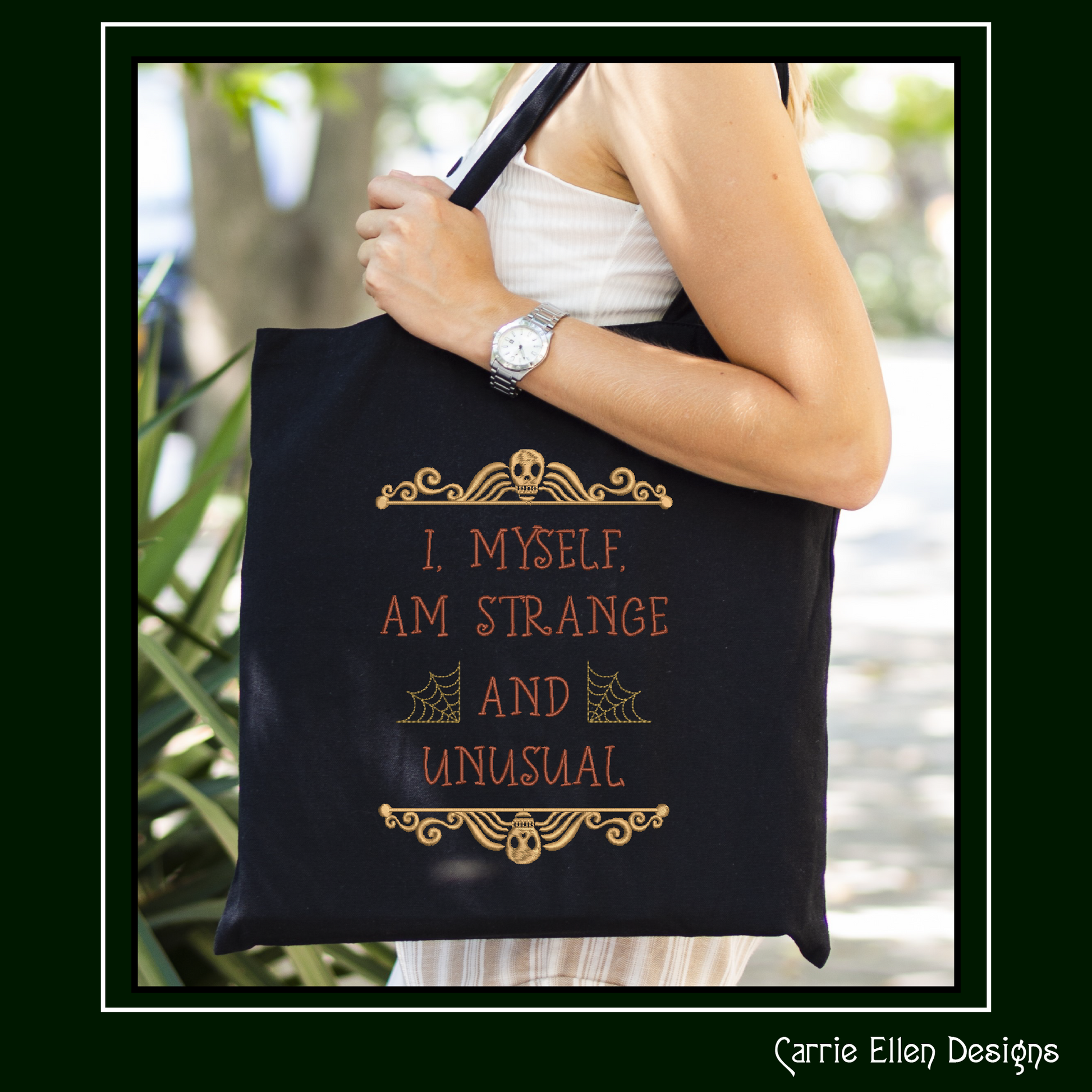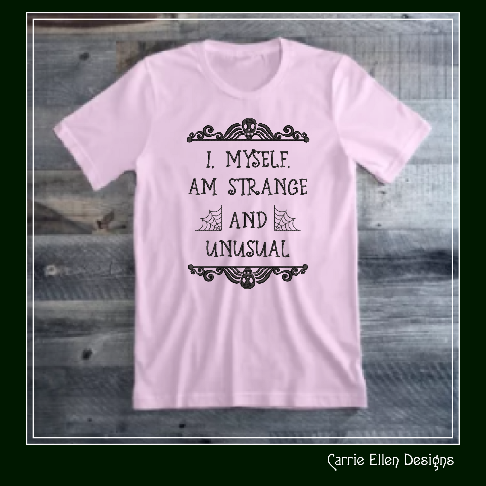 Celebrate your spooky side with this “Strange and Unusual” embroidery design, inspired by one of the most iconic lines from Beetlejuice! Featuring a gothic-style font wrapped in delicate cobwebs, this design is perfect for Halloween décor, witchy apparel, or any project that calls for a little dark charm.