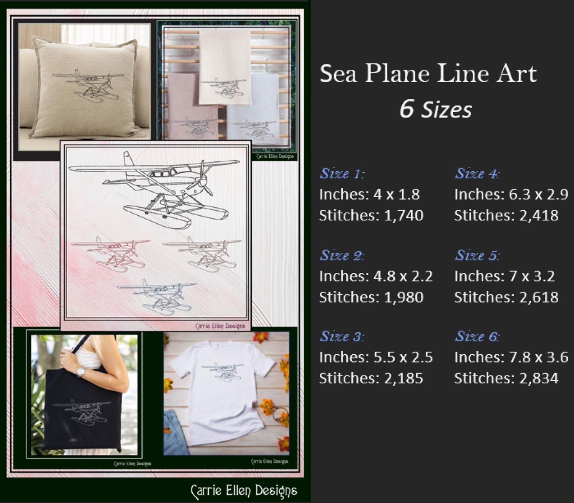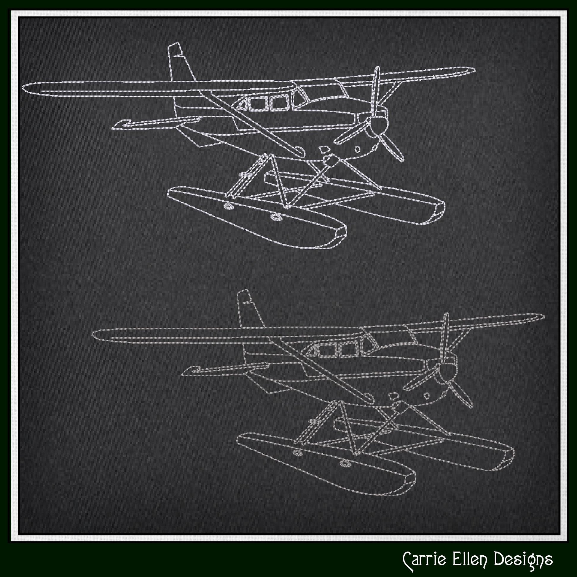 Sea Plane Machine Embroidery Design, Line Art Sketch, Airplane Pattern, Artistic Embroidery, 6 Sizes (3017)