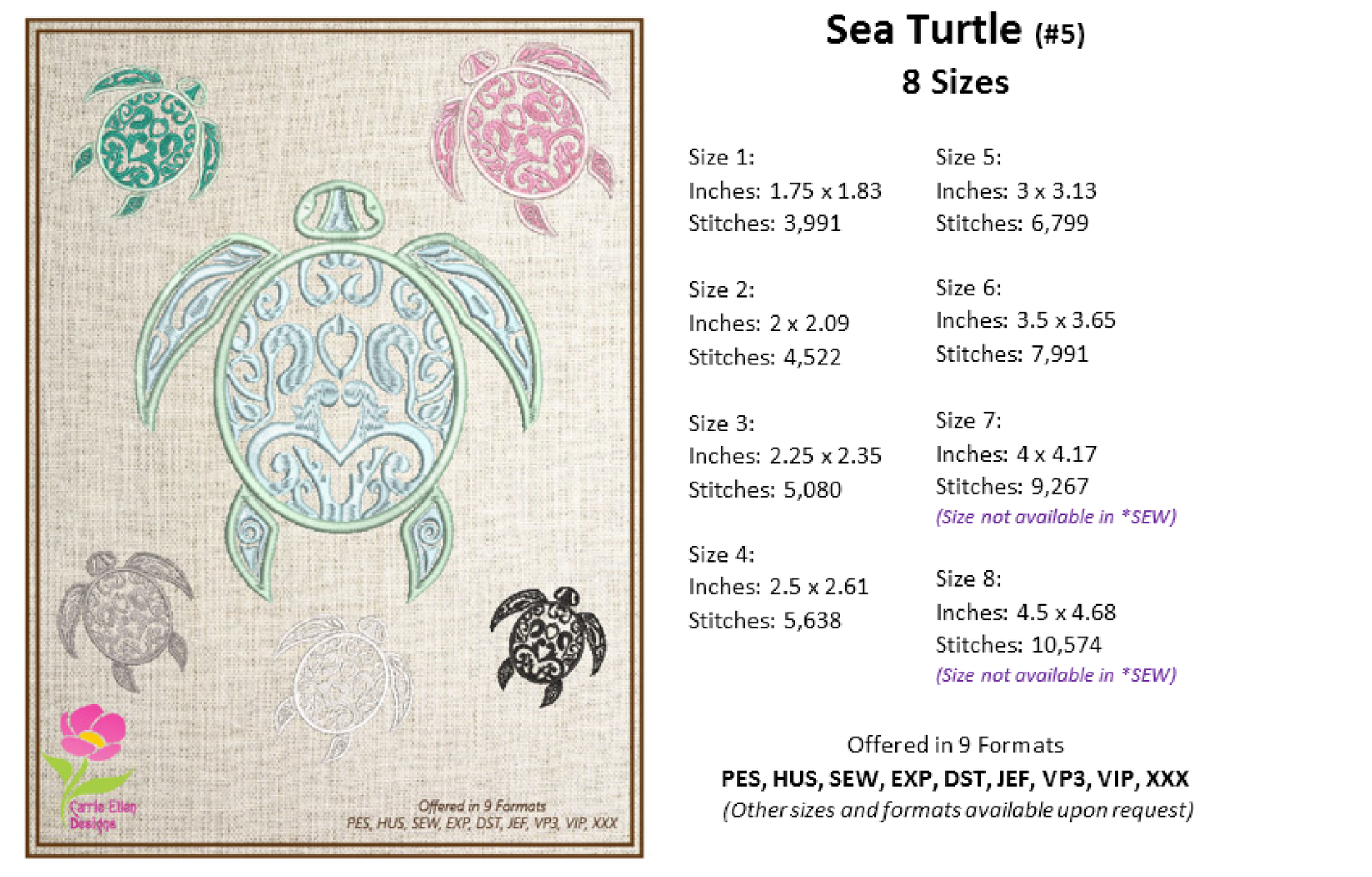 Sea Turtle machine Embroidery Design, Sea Turtle Tattoo, Machine Embroidery Design, Animal Embroidery, Reptile Embroidery, 8 Sizes (0300)