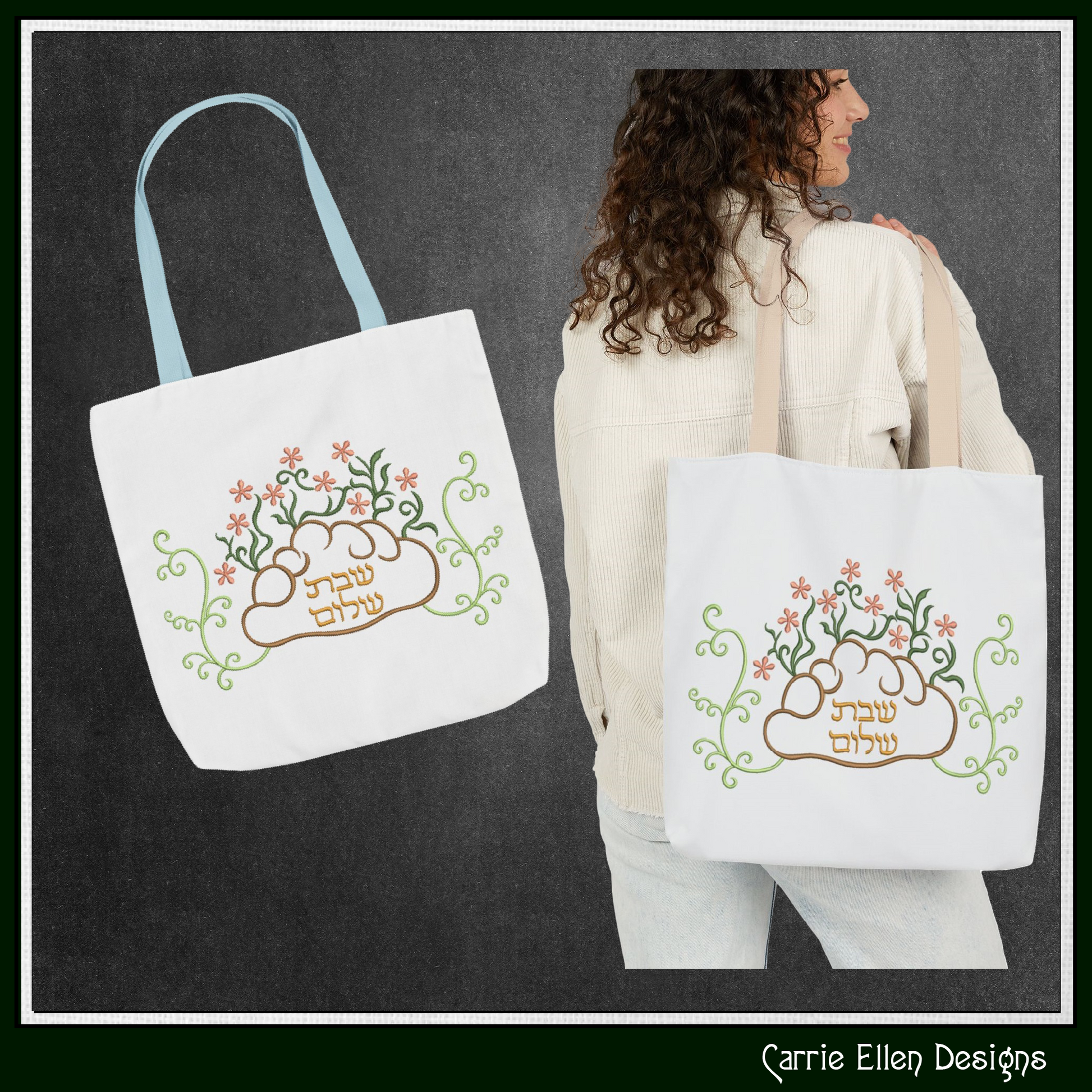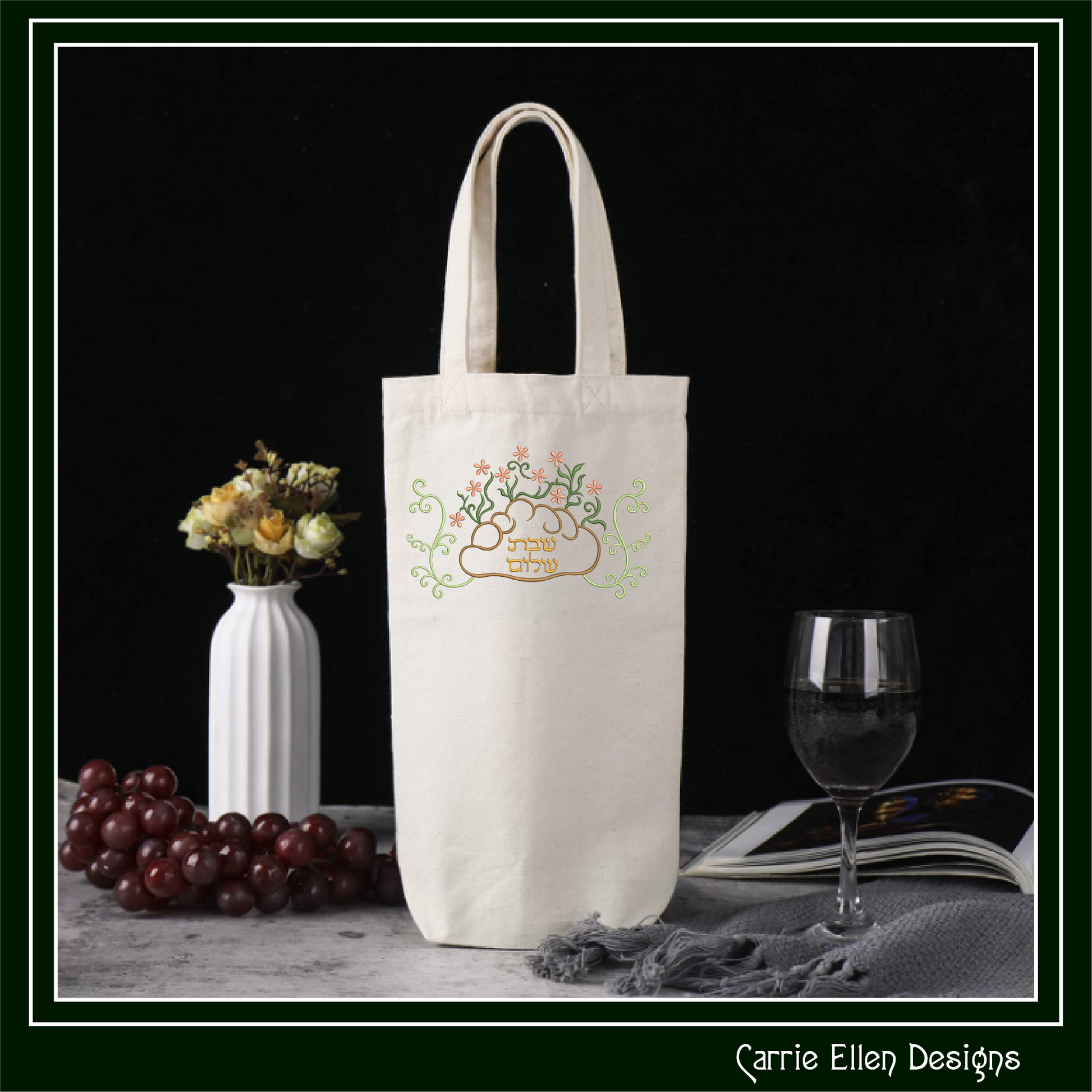 Shabbat Shalom Judaica Machine Embroidery Design – Challah & Floral Embroidery Pattern with Hebrew Text, 6 Sizes (3526))
