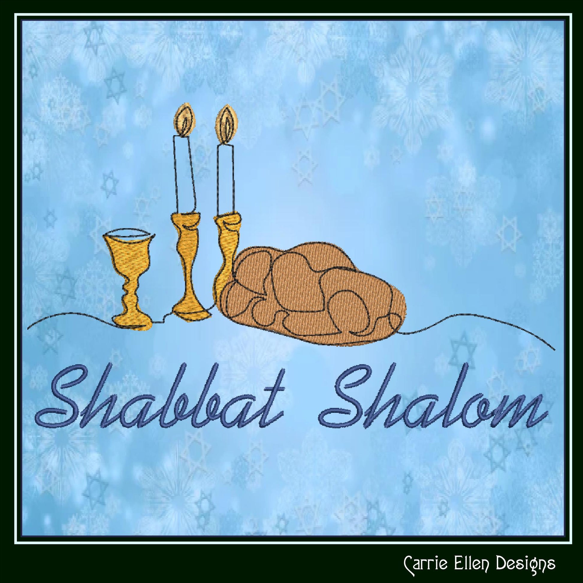 Celebrate tradition and peace with this elegant Shabbat Shalom Machine Embroidery Design, featuring a detailed challah bread pattern, glowing Shabbat candlesticks, and the phrase "Shabbat Shalom" in a beautiful script.