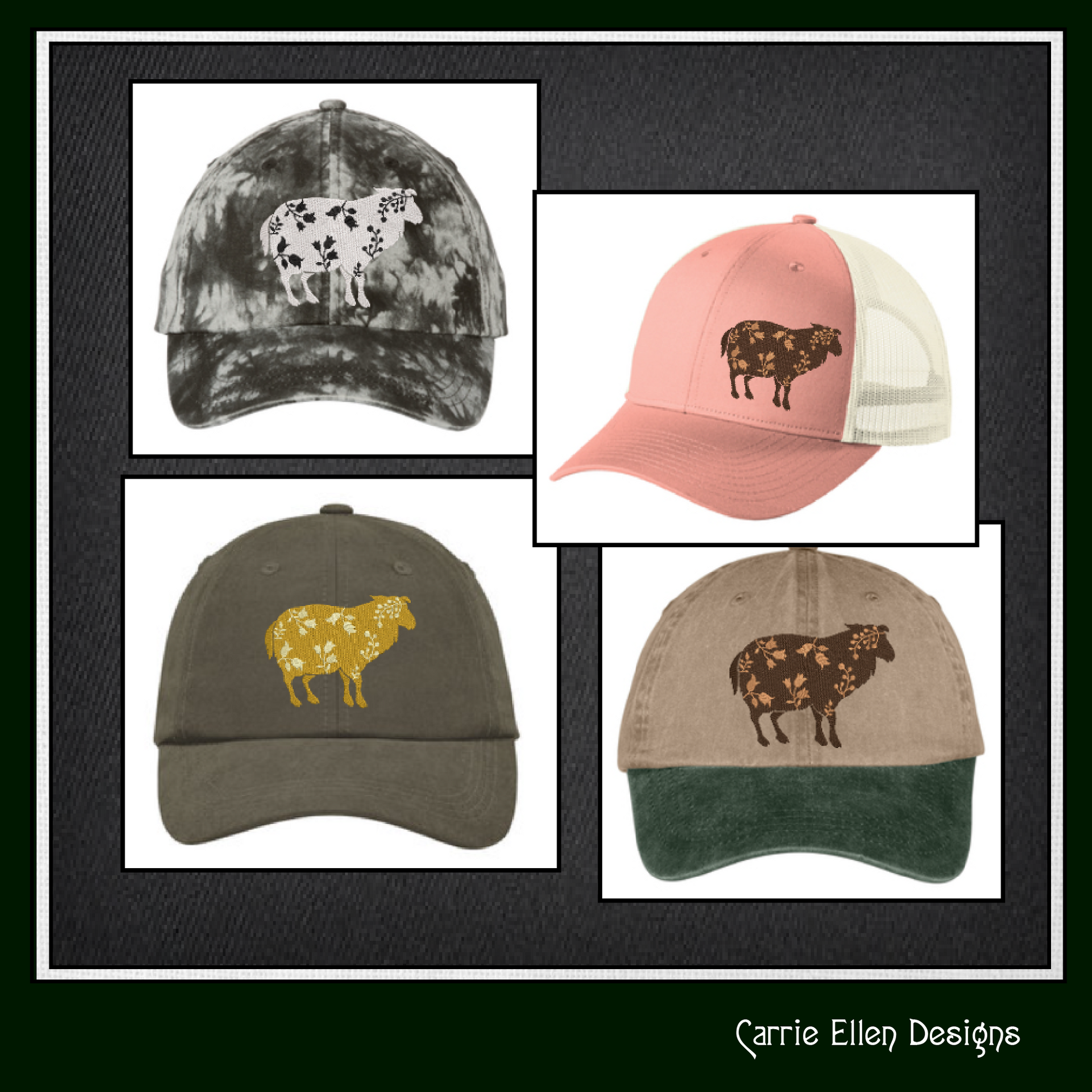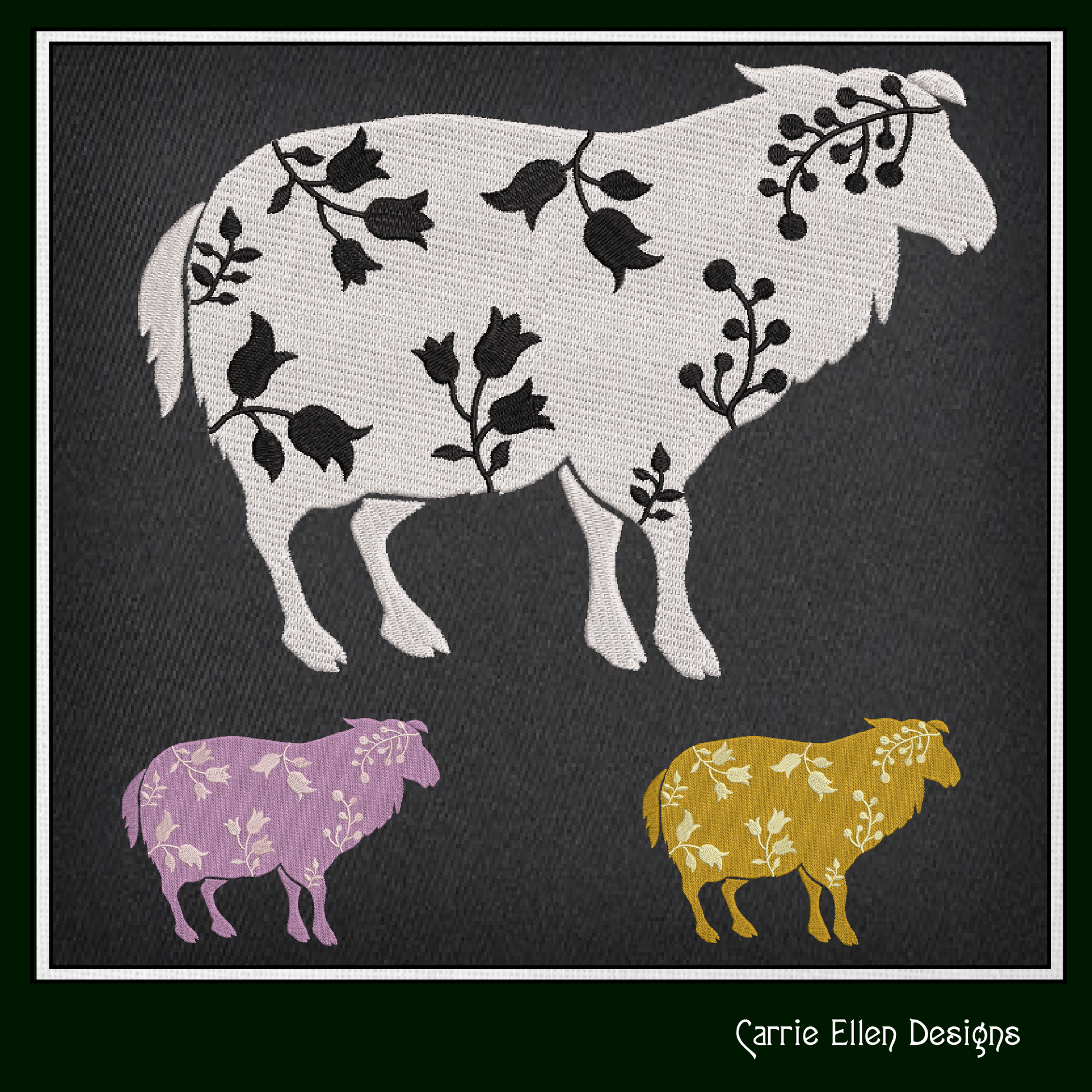 Floral Sheep Machine Embroidery Design – Livestock Farm Animal Silhouette with Flowers, 6 Sizes (1676)