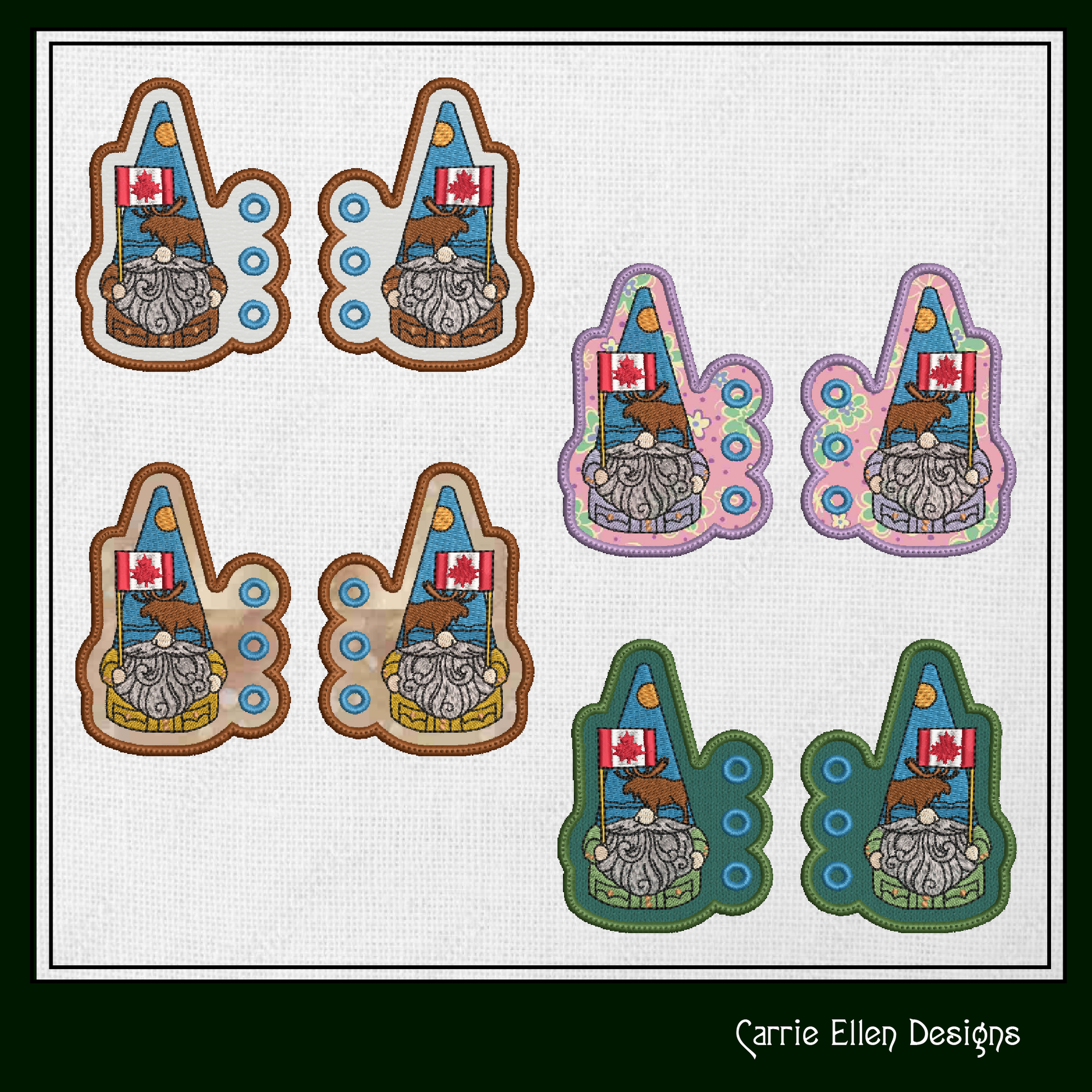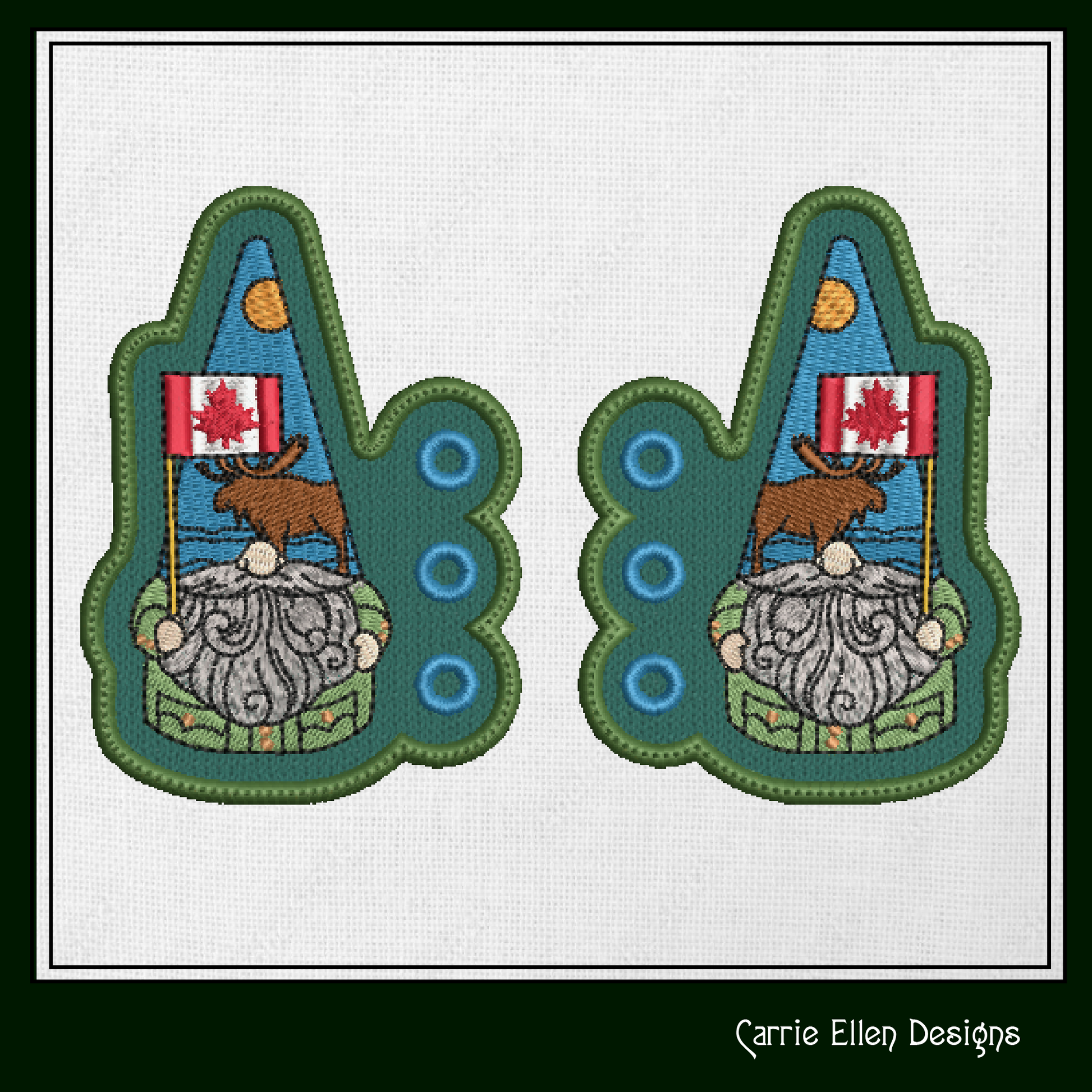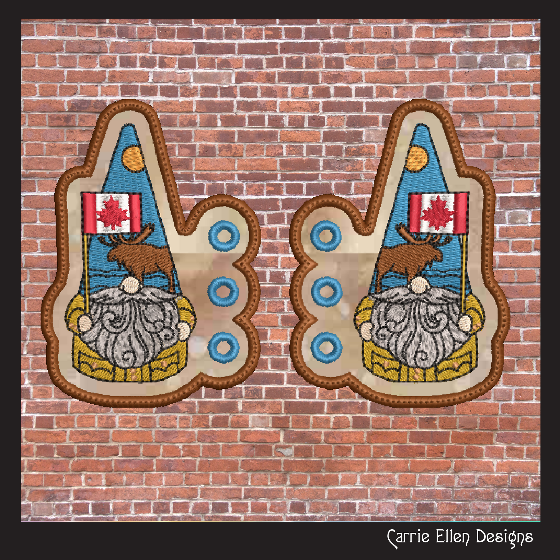 Canadian Gnome Shoe Wing ITH Embroidery Design – In The Hoop Gnome with Canada Flag Shoe Charms for Shoes and Boots (4x4 & 5x7 Hoop) (1791)
