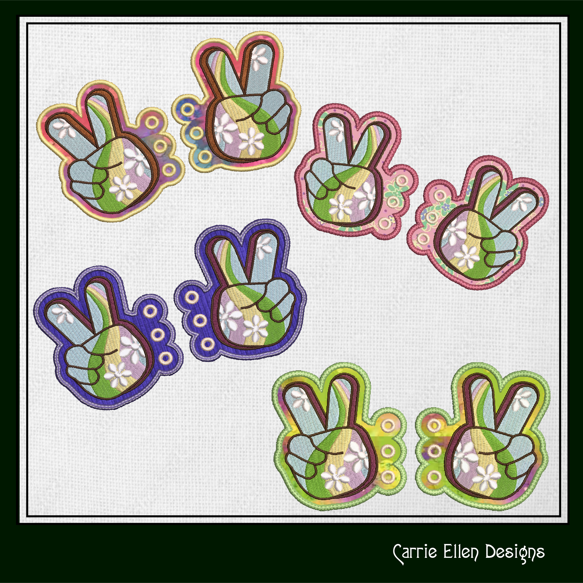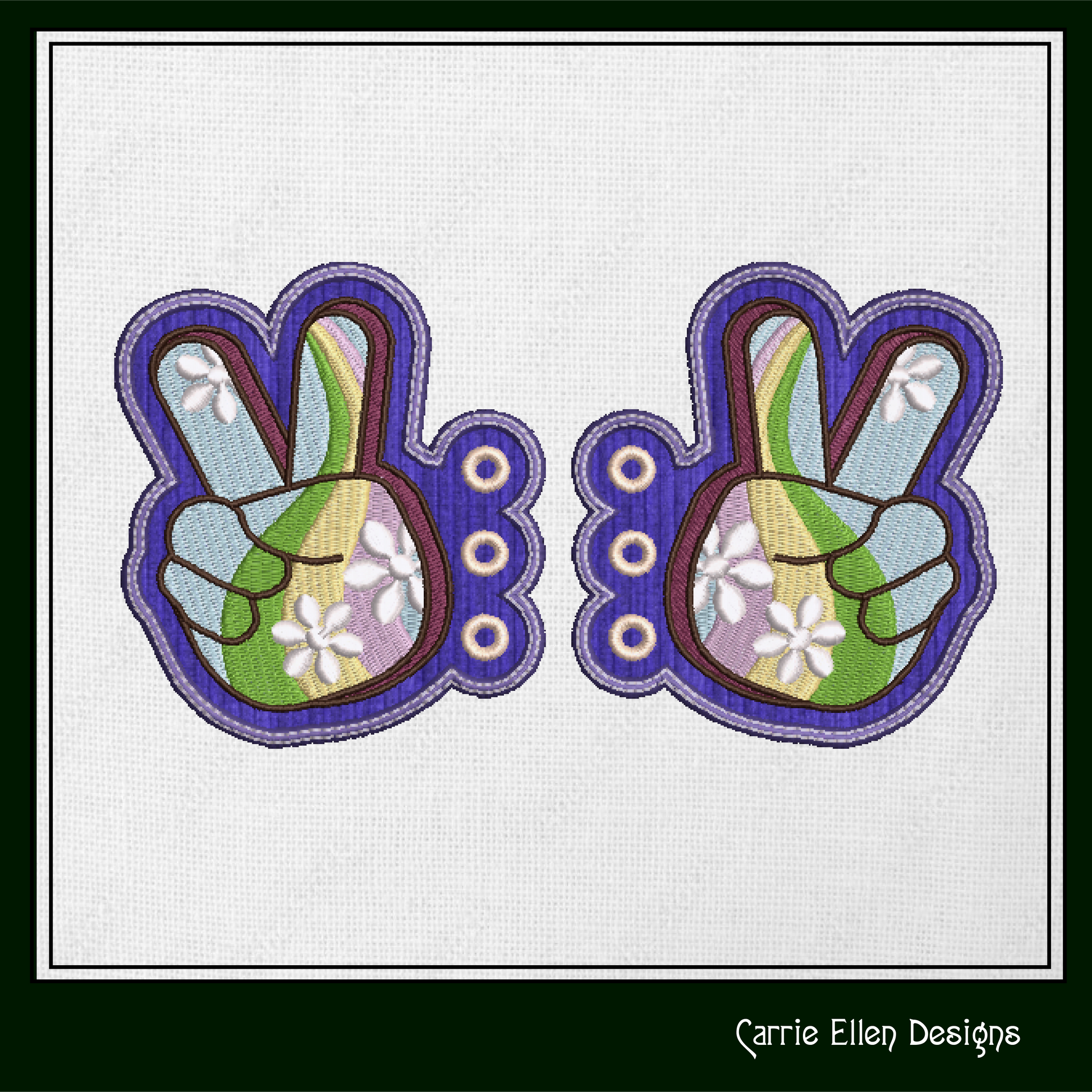 Peace Sign ITH Shoe Wings – Boho Hipster Wing Charms for Shoes and Boots – In The Hoop Embroidery Design (4x4 & 5x7 Hoop) (1263)