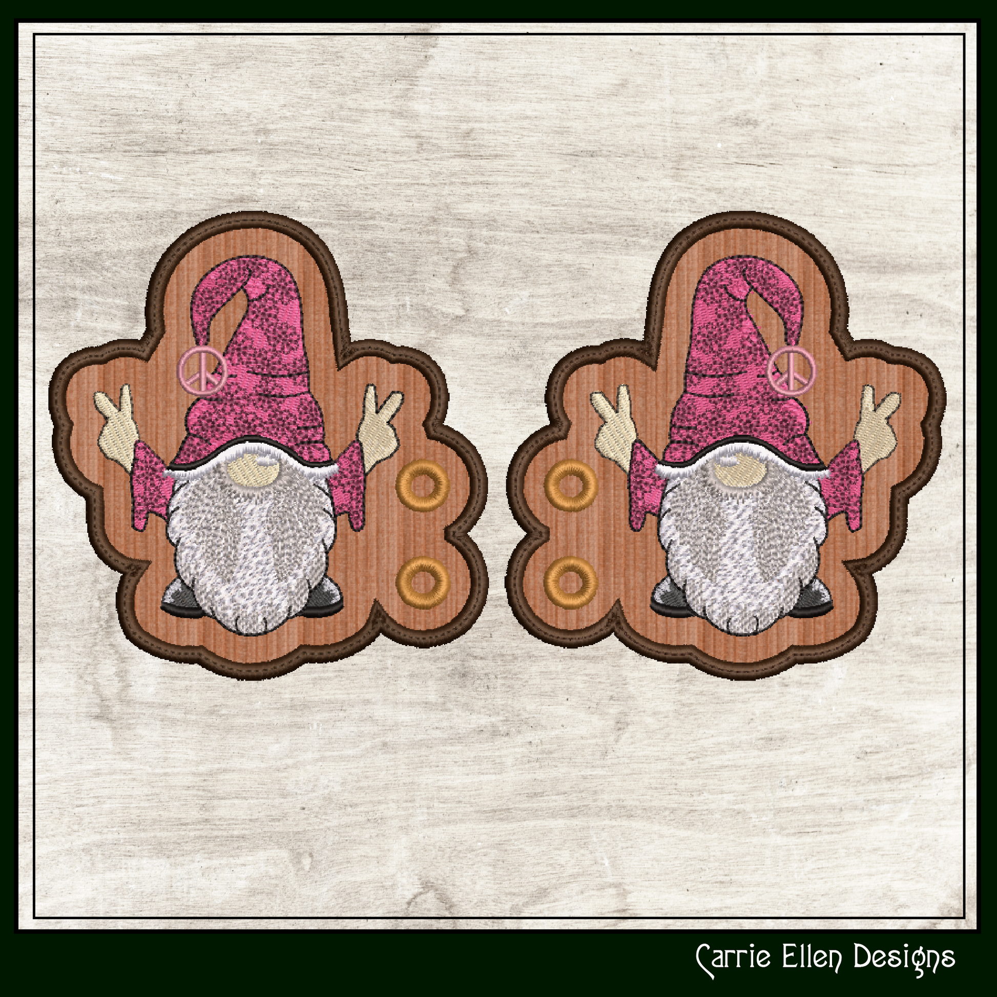 Step into peace and groovy vibes with this Hippie Gnome In The Hoop (ITH) Shoe Wings Machine Embroidery Design! This quirky and fun-loving gnome brings a boho twist to your shoes or boots, making it a perfect accessory for hippie styles, festivals, and playful outfits.