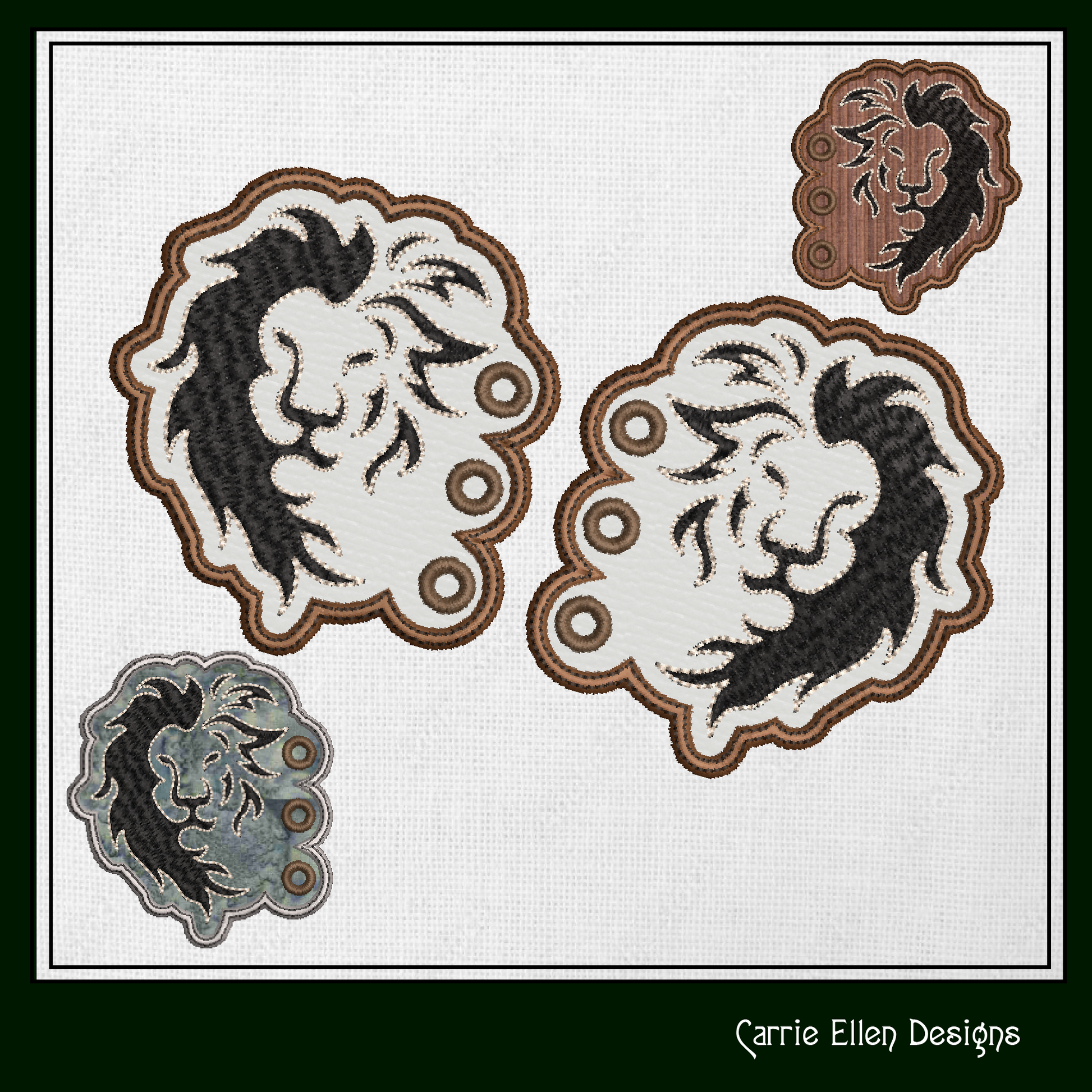Lion ITH Shoelace Charms – In The Hoop Lion Head Wing Charms for Shoes and Boots – Machine Embroidery Design (4x4 & 5x7 Hoops) (1276)