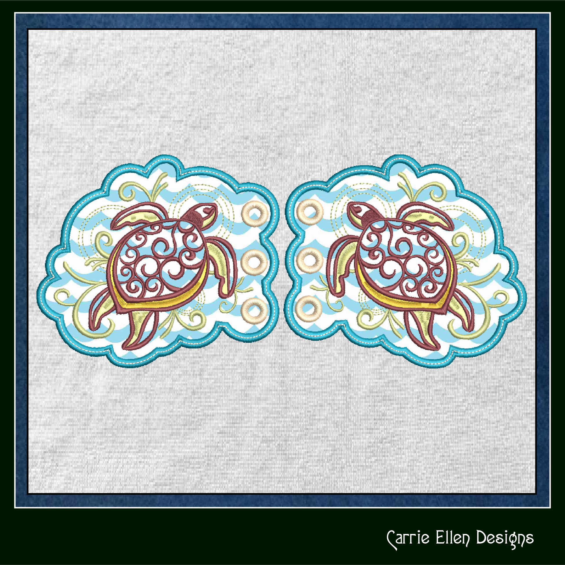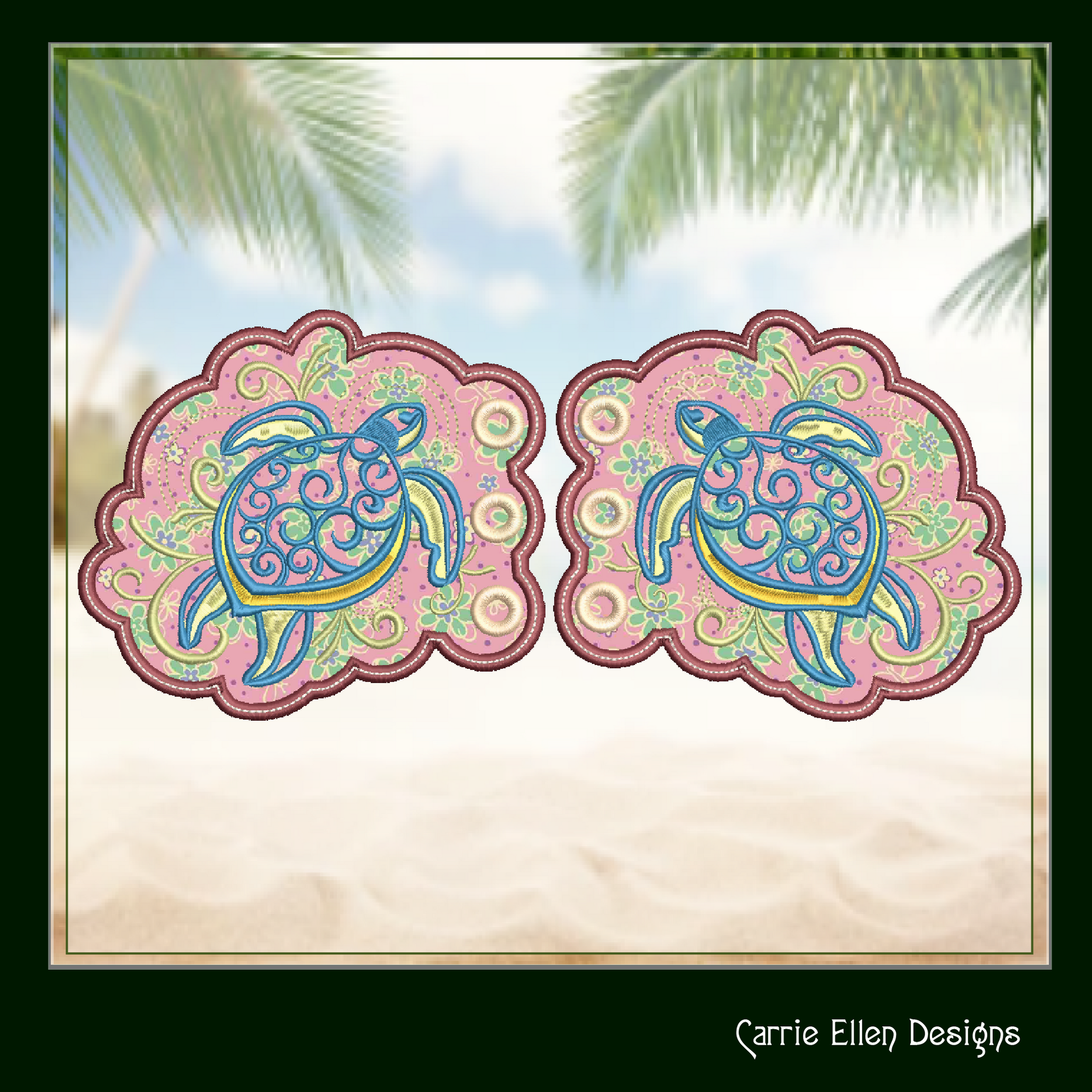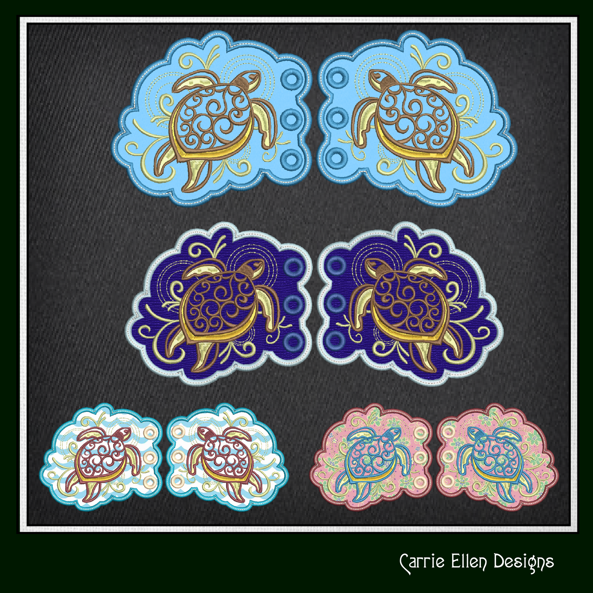 Sea Turtle Shoe Wing Machine Embroidery Design – In The Hoop Shoelace Wing Charms for Shoes and Boots – 4x4 & 5x7 Hoop (1744)