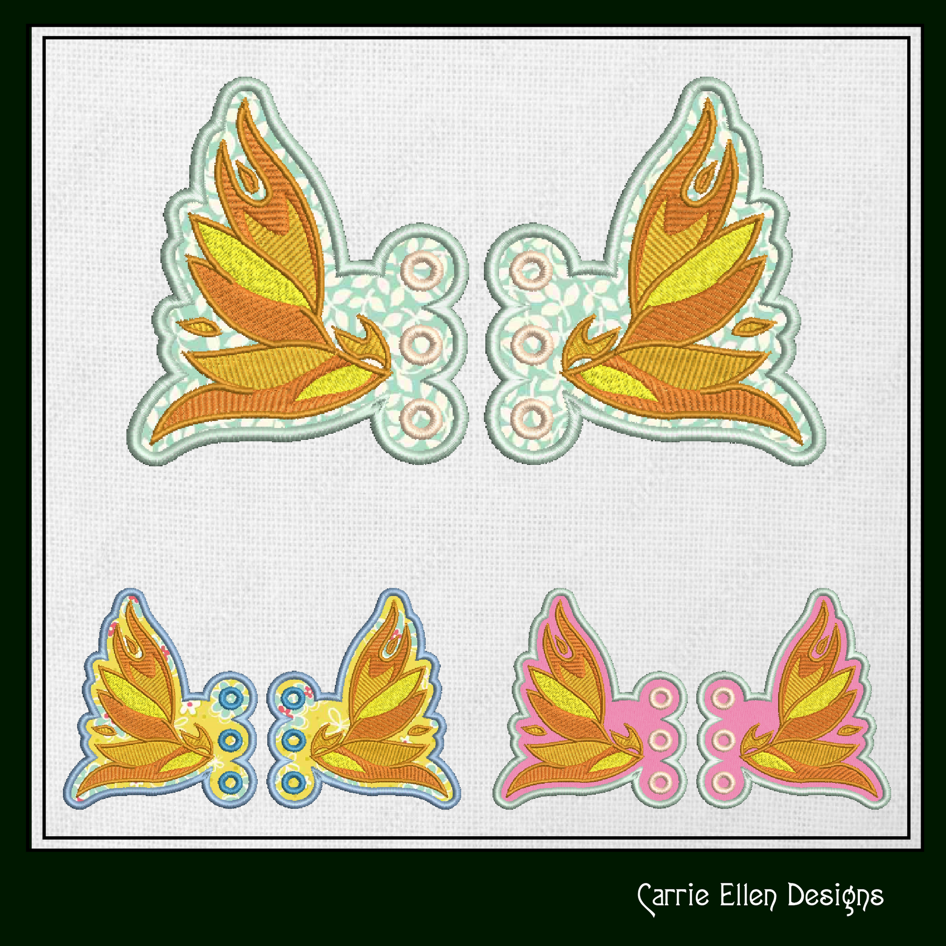 MLP Spitfire Shoe Wing Machine Embroidery Design – In The Hoop Phoenix Fairy Wing Shoelace Wings for Shoes and Boots – 4x4 & 5x7 Hoop (1769)