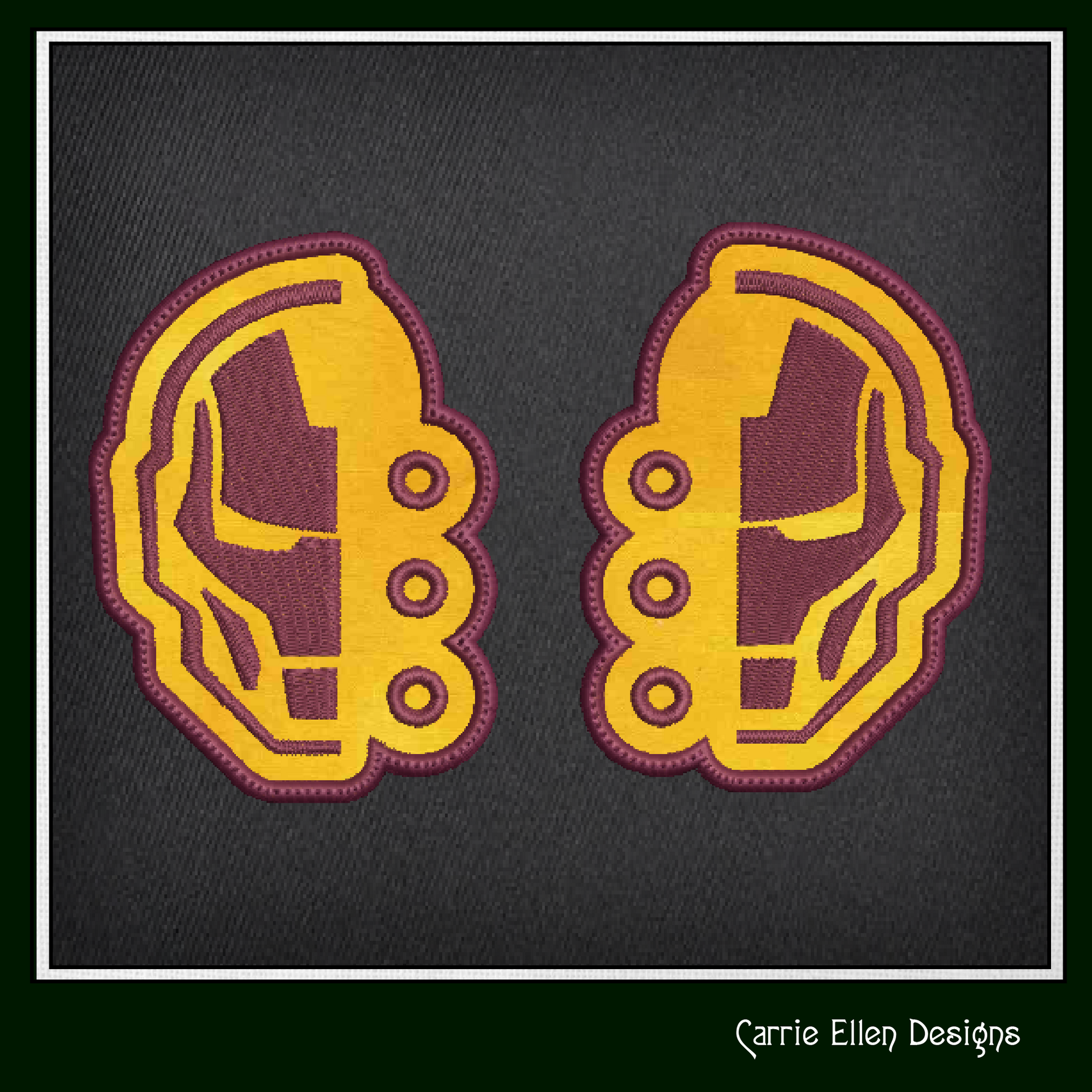 Iron Man-Inspired ITH Shoe Wing Machine Embroidery Design – Superhero Mask Logo In The Hoop Embroidery Project for Shoes and Boots – 4x4 & 5x7 Hoop (1773)