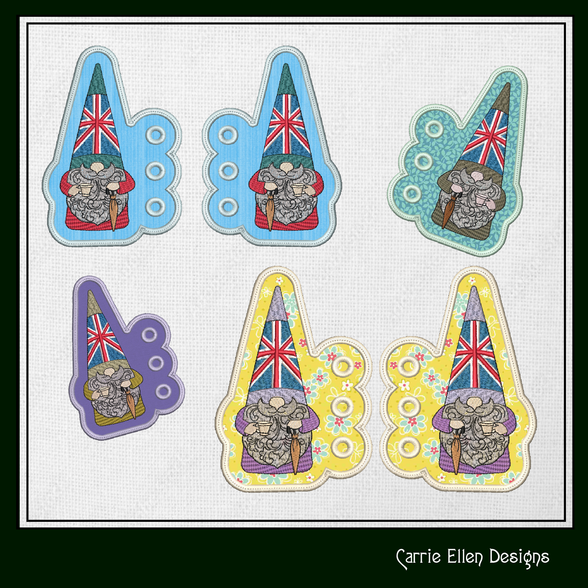 British Gnome Shoe Wing ITH Embroidery Design – In The Hoop Gnome with England Flag Hat Shoe Charms for Shoes and Boots – 4x4 & 5x7 Hoop (1795)