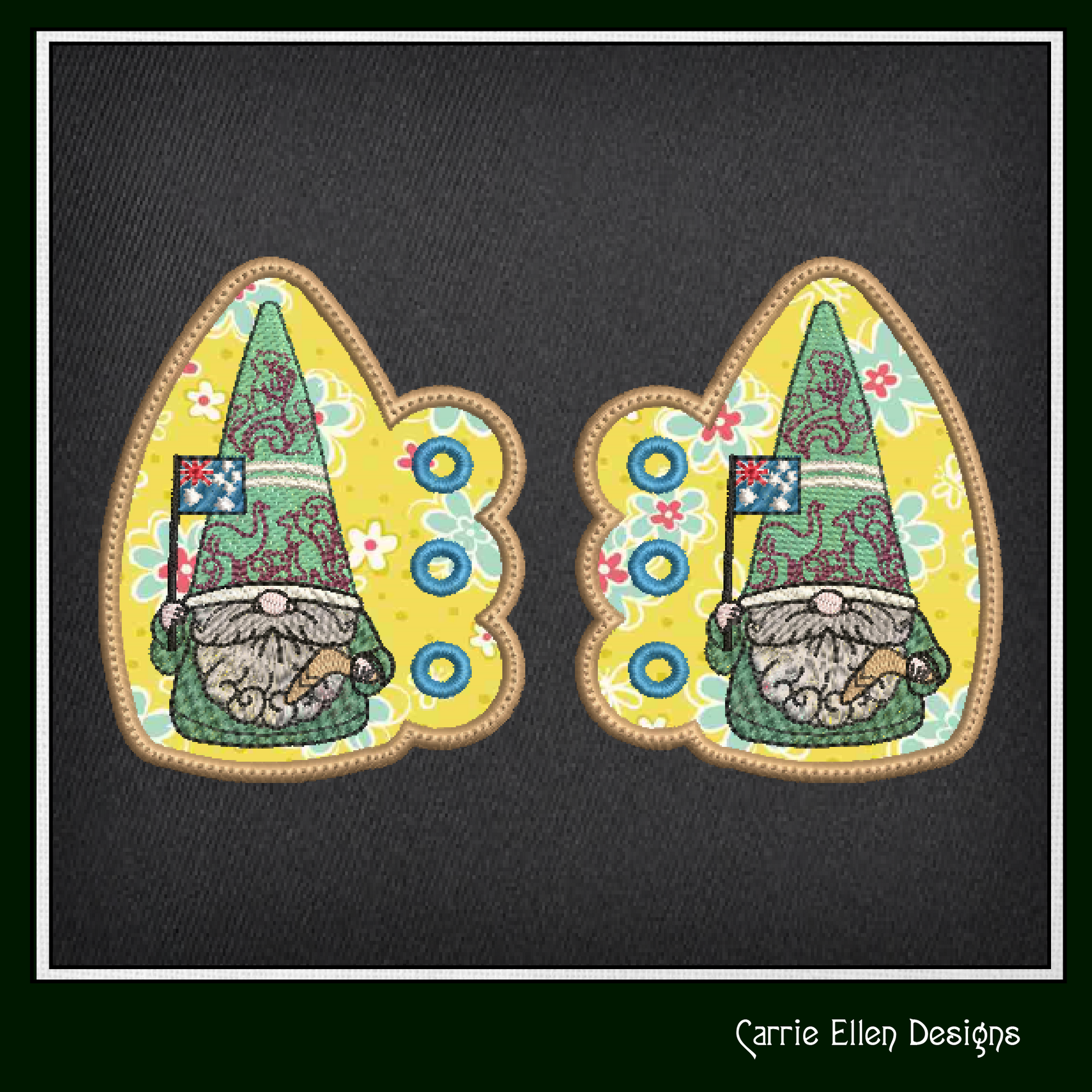 Australian Gnome Shoe Wing ITH Embroidery Design – In The Hoop Gnome with Australian Flag and themed Hat Shoe Charms for Shoes and Boots – 4x4 & 5x7 Hoop (1798)