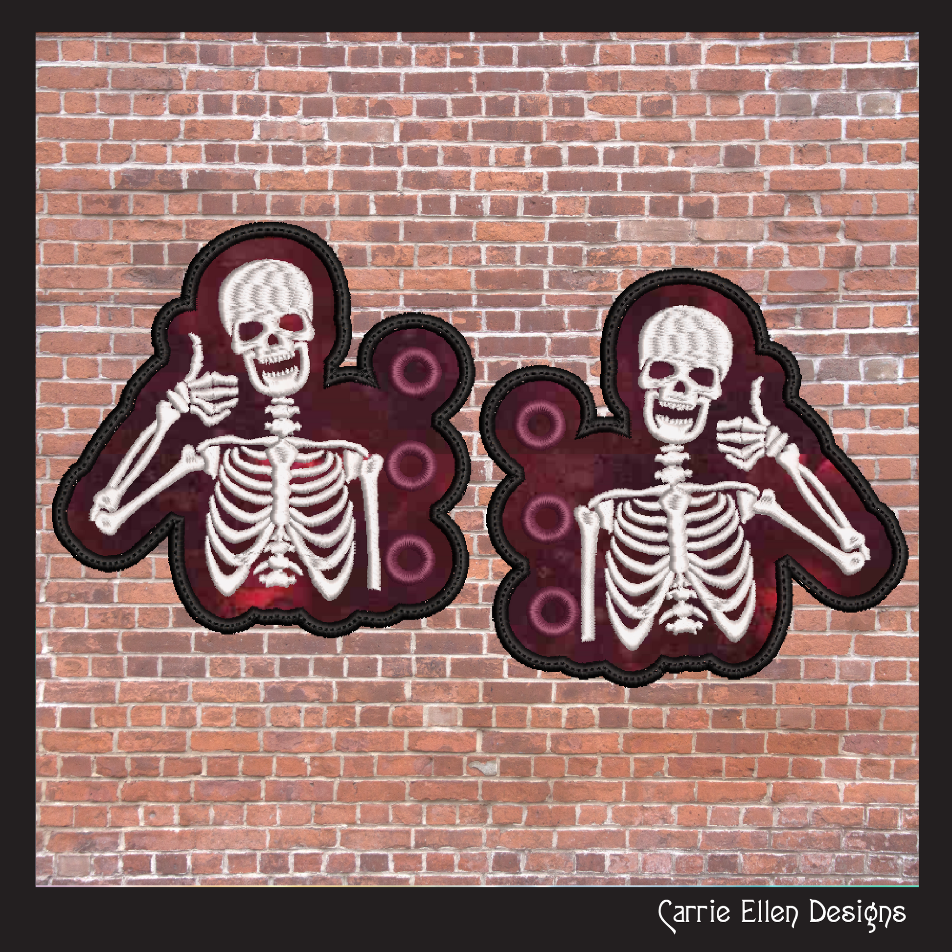 Add a spooky twist to your step with this Skeleton ITH Shoe Wing Machine Embroidery Design featuring a playful thumbs-up skeleton! Perfect for Halloween, goth fashion, or just showing off your love for the quirky and macabre, these In The Hoop (ITH) shoe wings make a fun and eye-catching accessory.