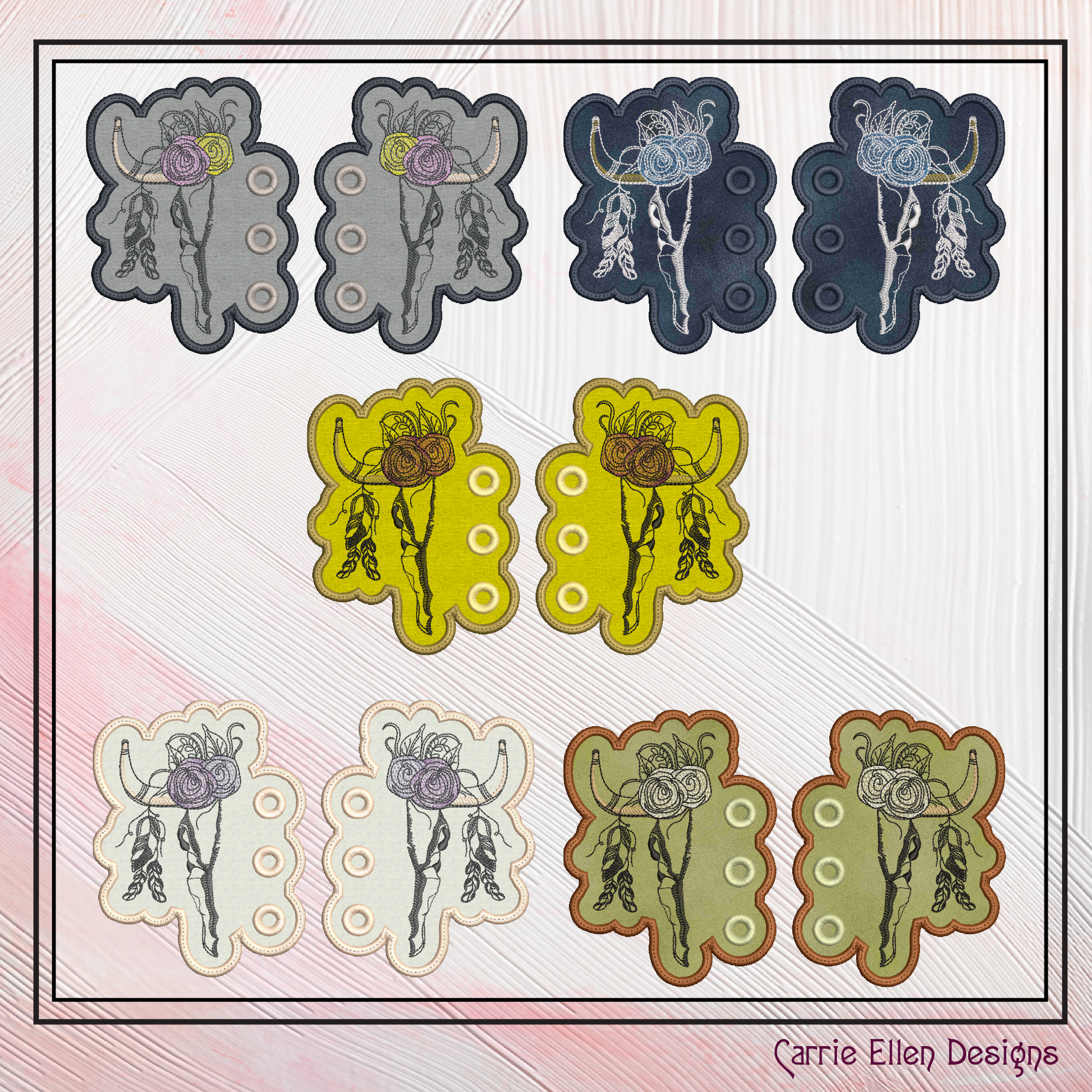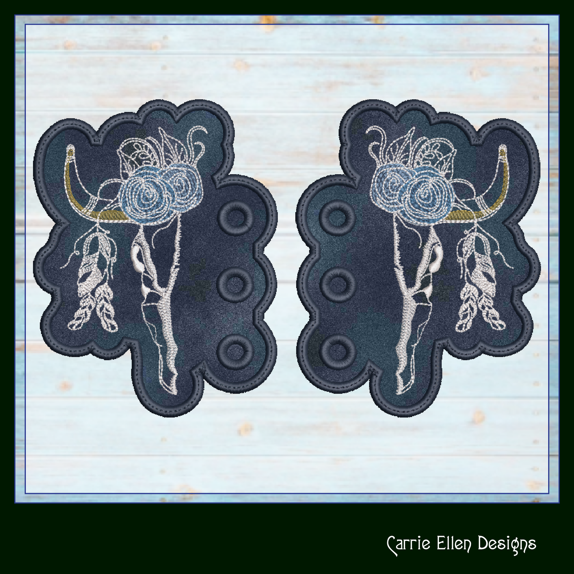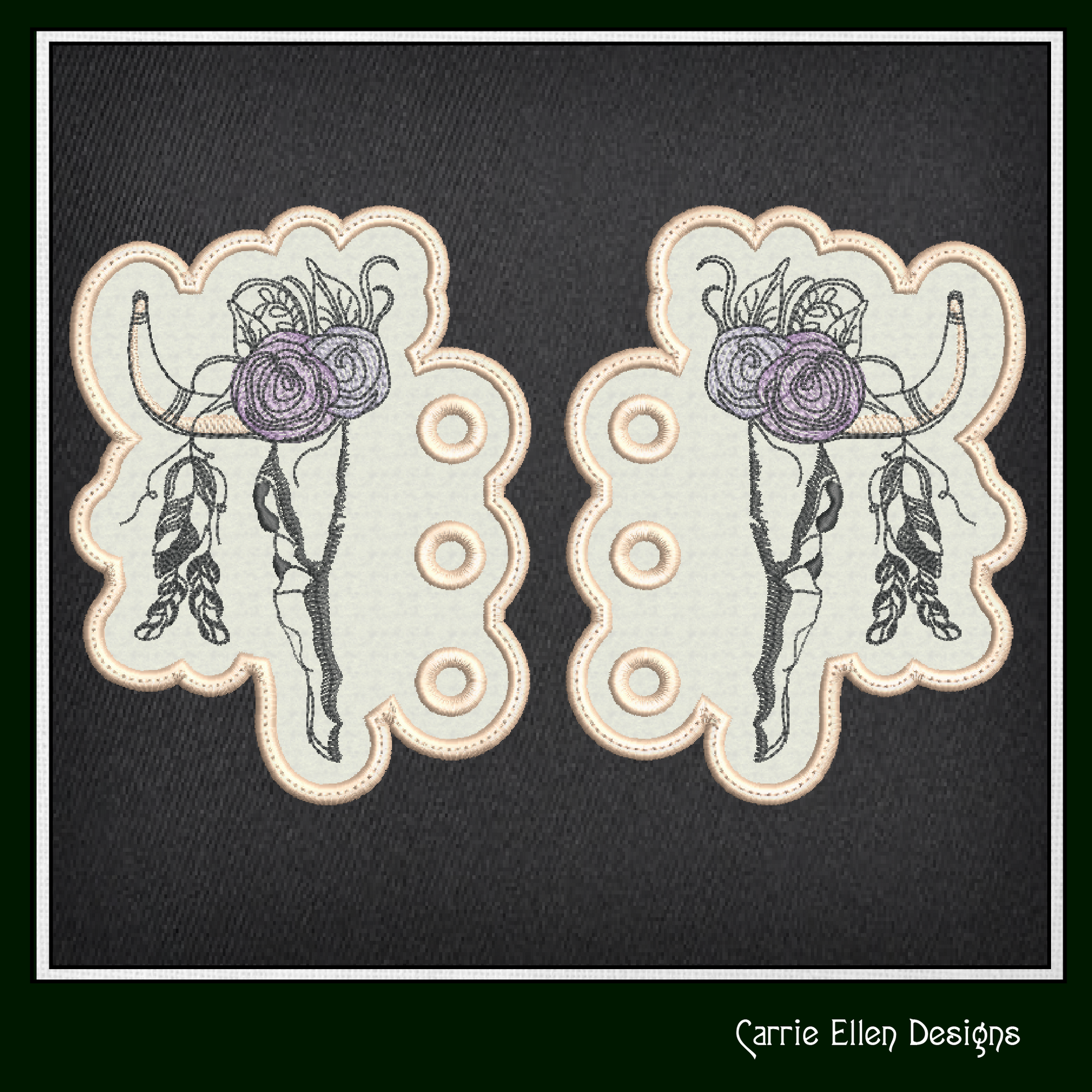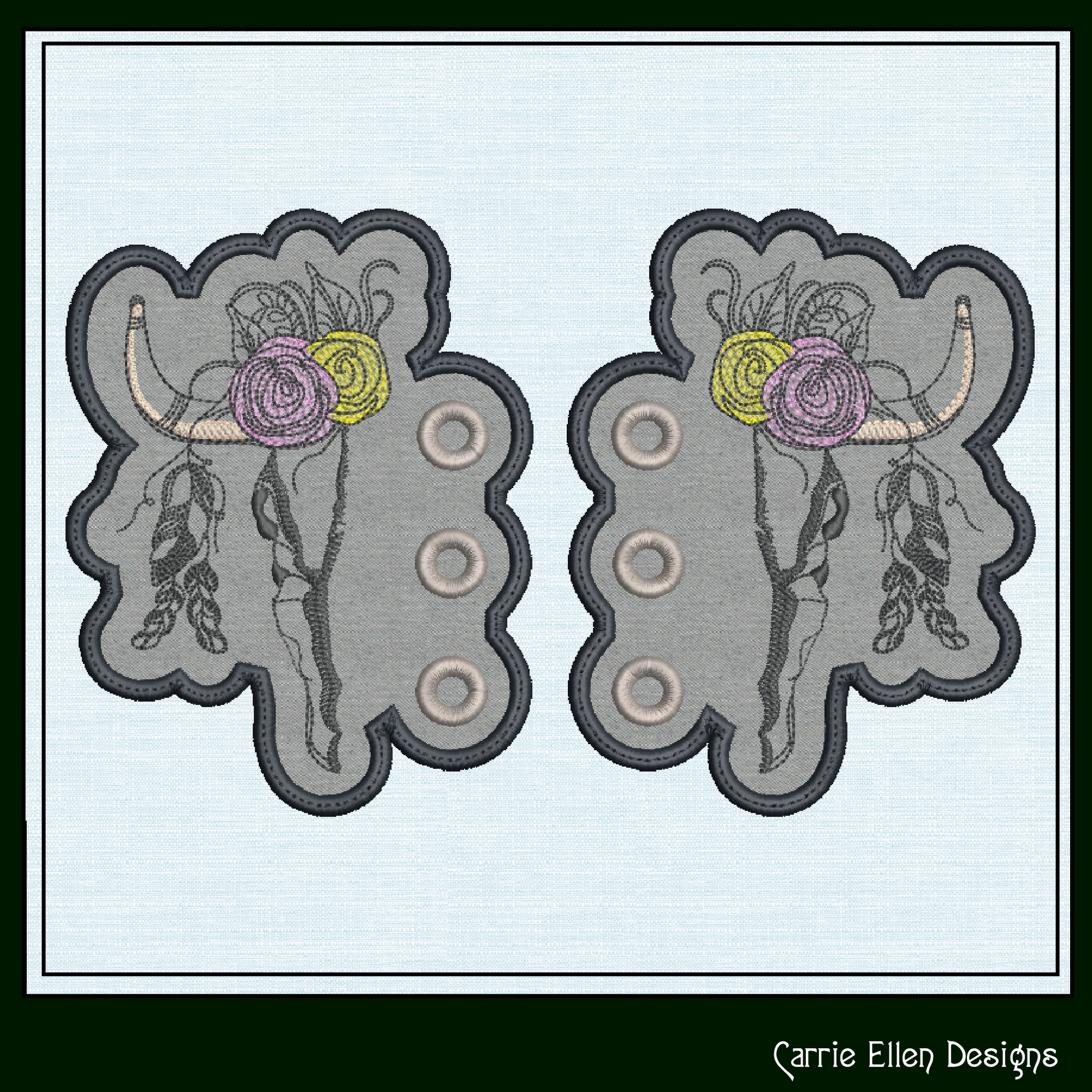 Deer Skull ITH Shoe Wing Embroidery Design – In The Hoop Floral Antler Skull Machine Embroidery Pattern – 4x4 & 5x7 Hoop (2230)