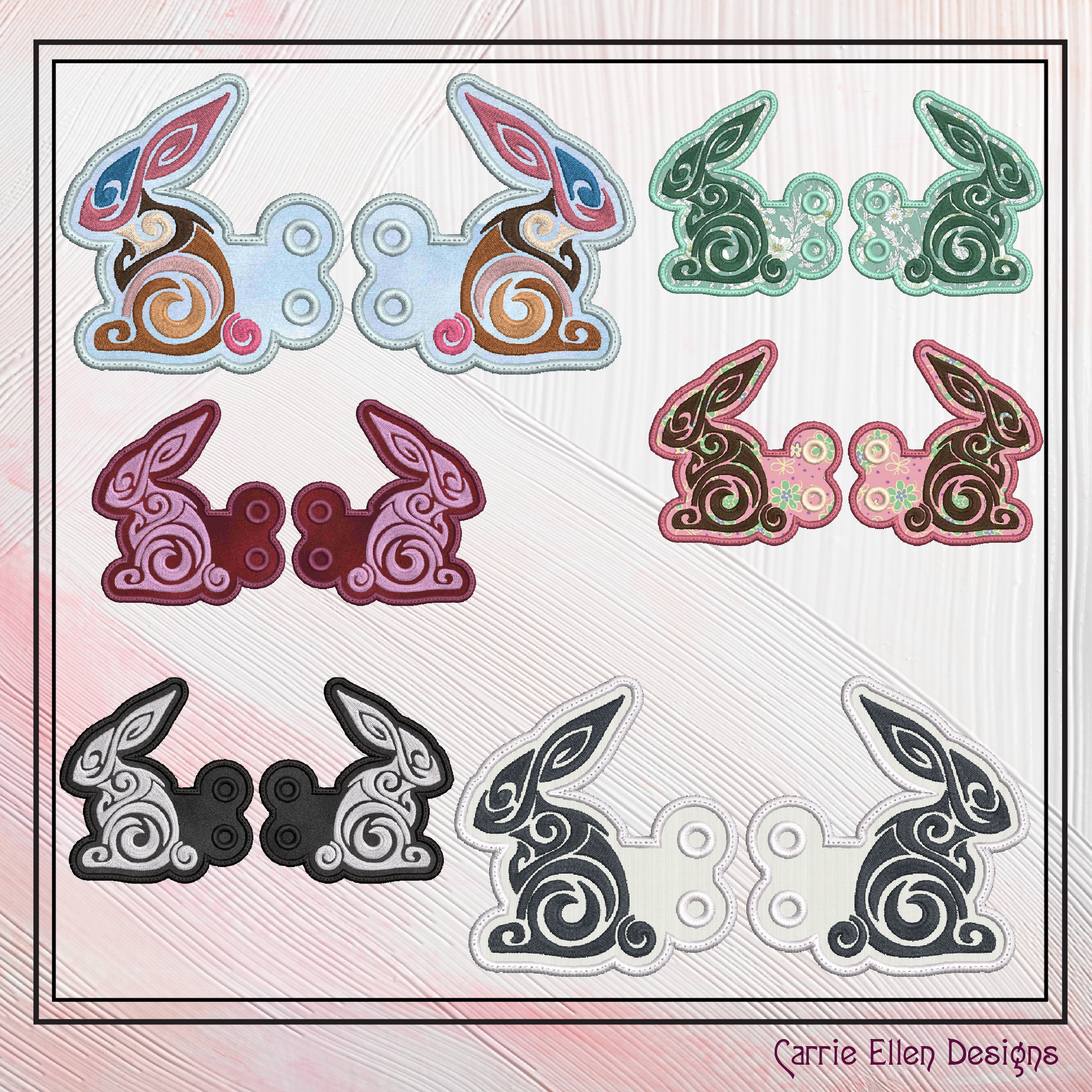 Artistic Rabbit ITH Embroidery Design – Colorful Bunny Shoe Wings (4x4 & 5x7 Hoops) 2316
