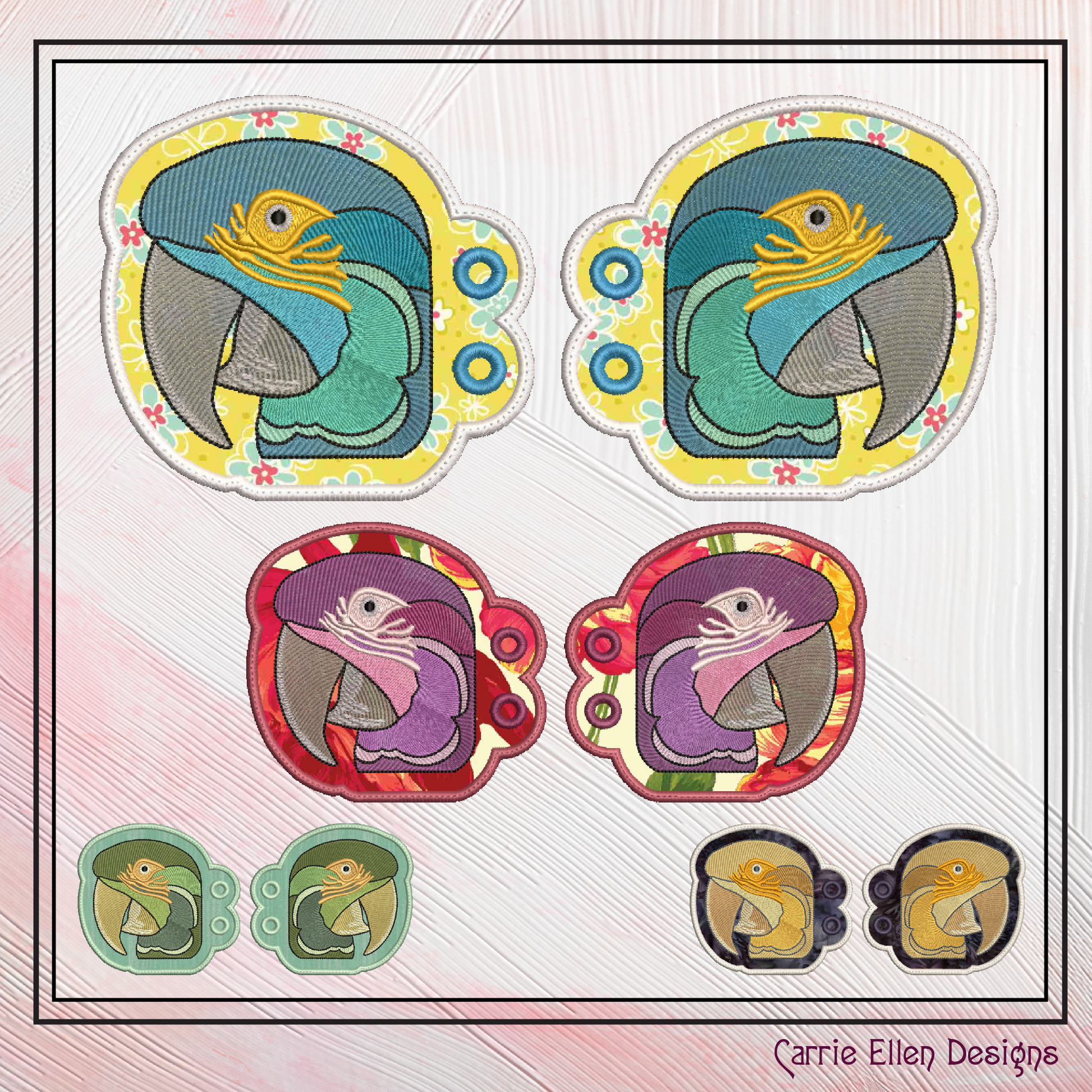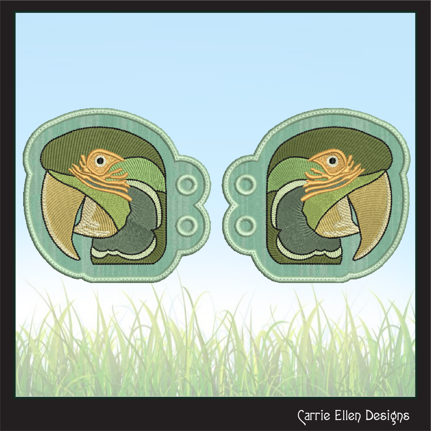 Parrot ITH Shoe Wing Charms – Tropical Bird Machine Embroidery Design for Shoes and Boots – 4x4 & 5x7 Hoop (2544)