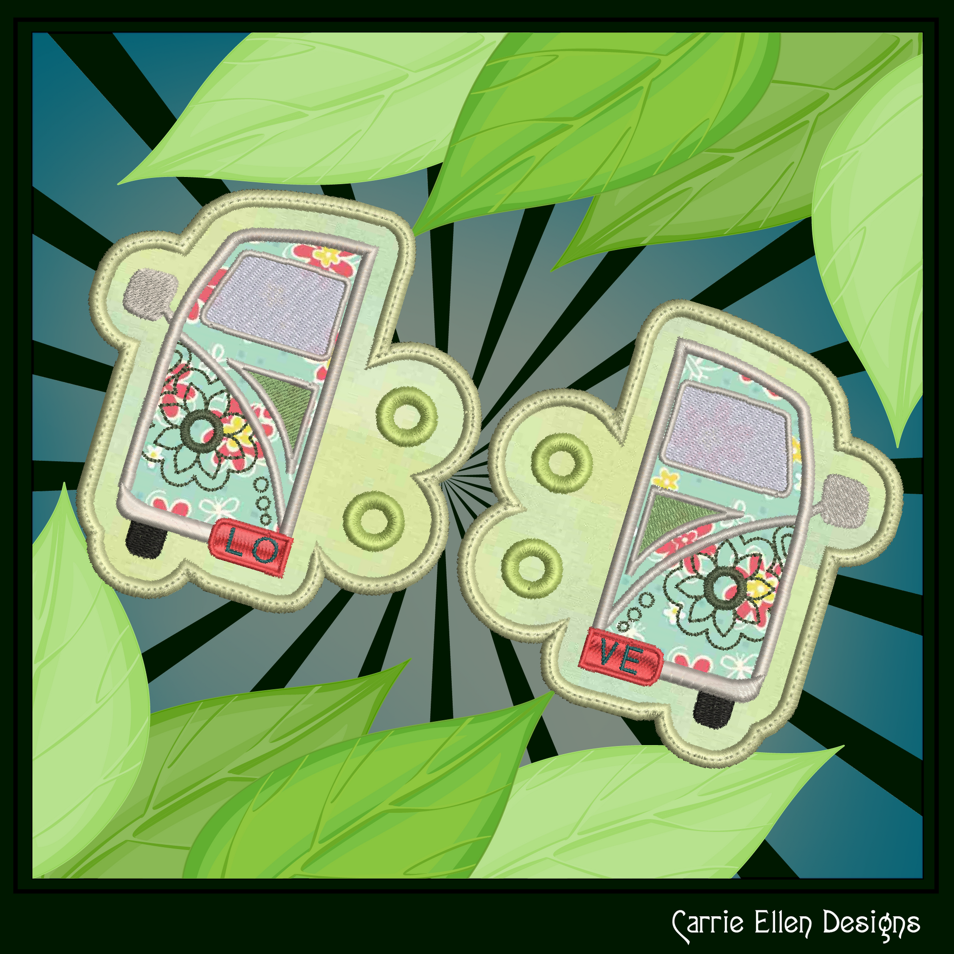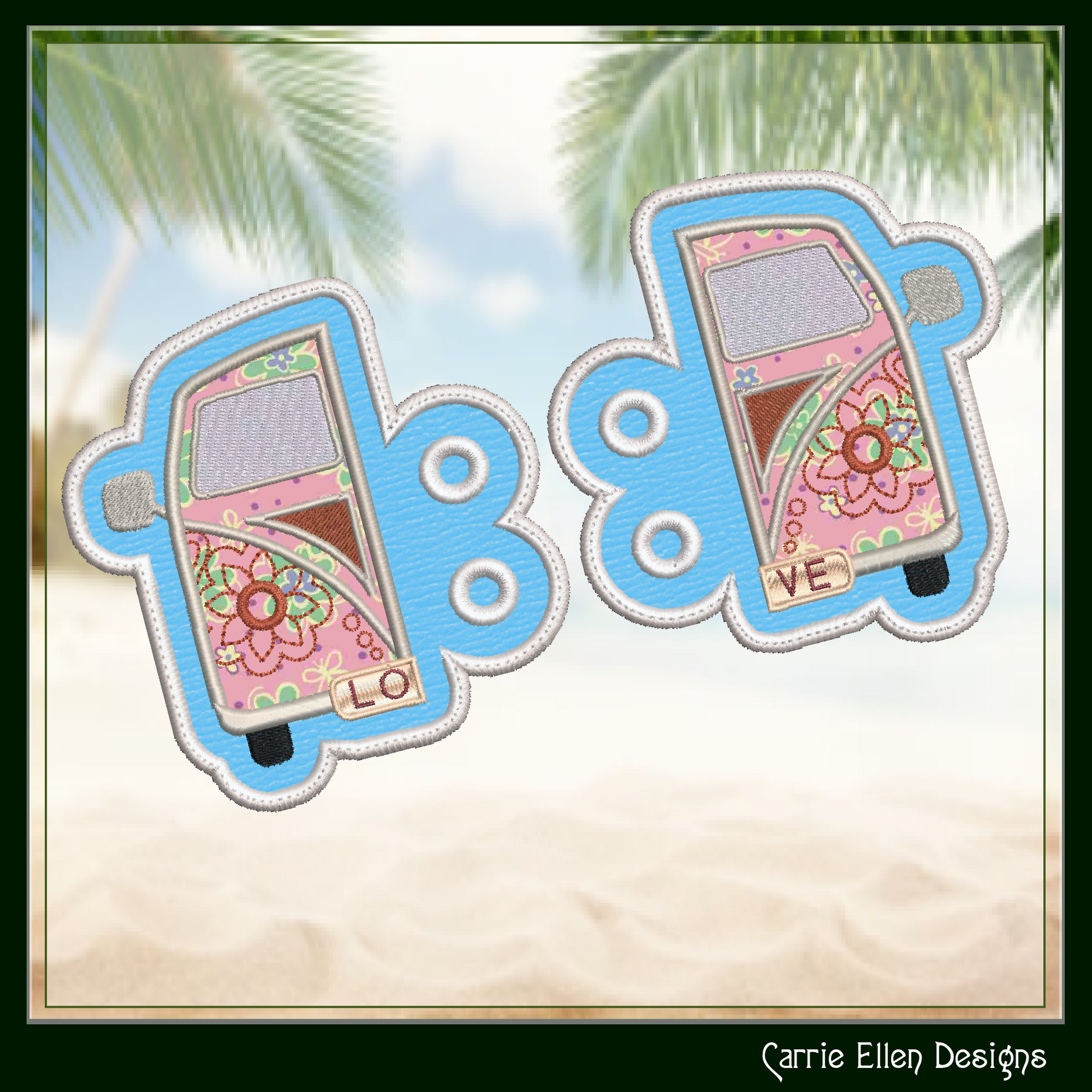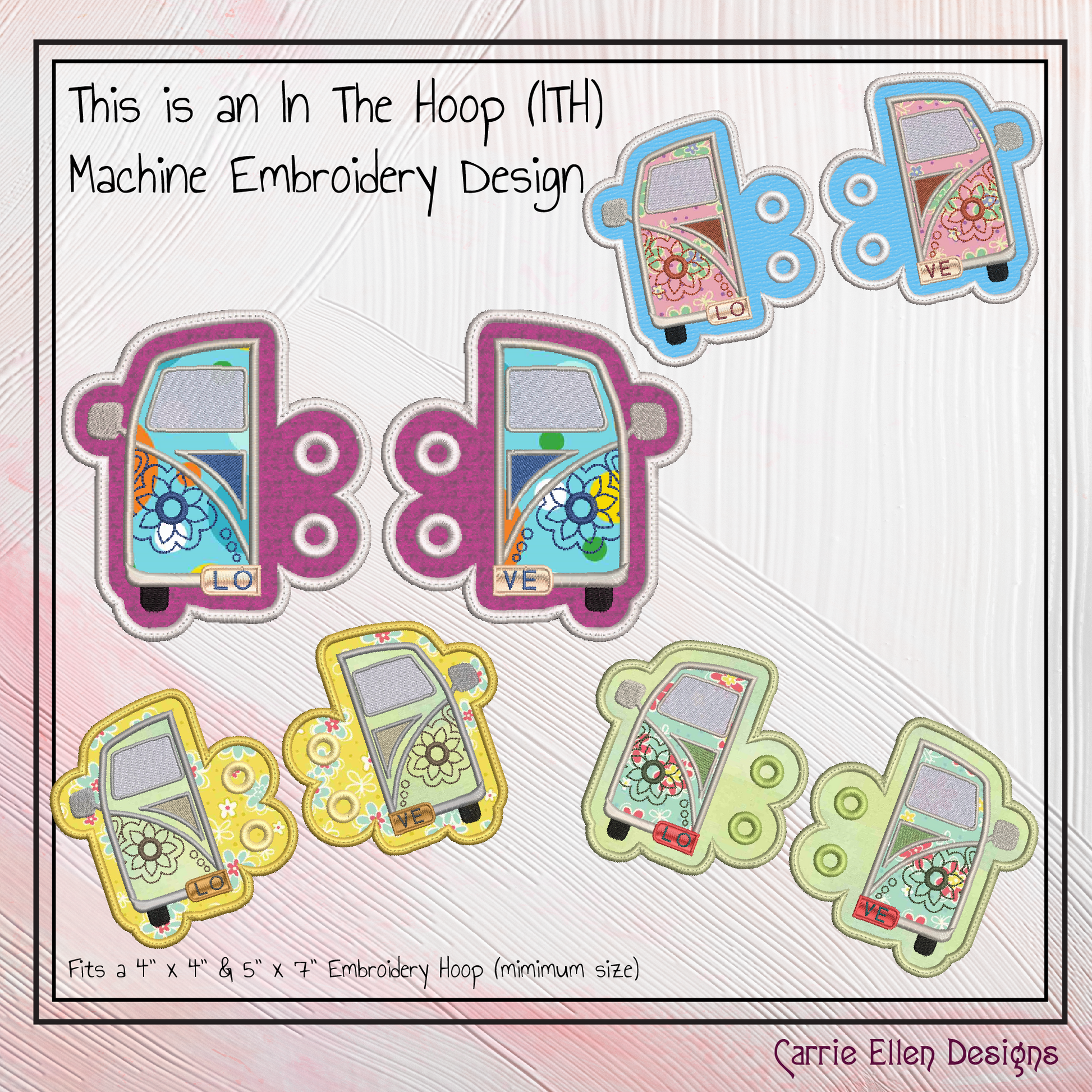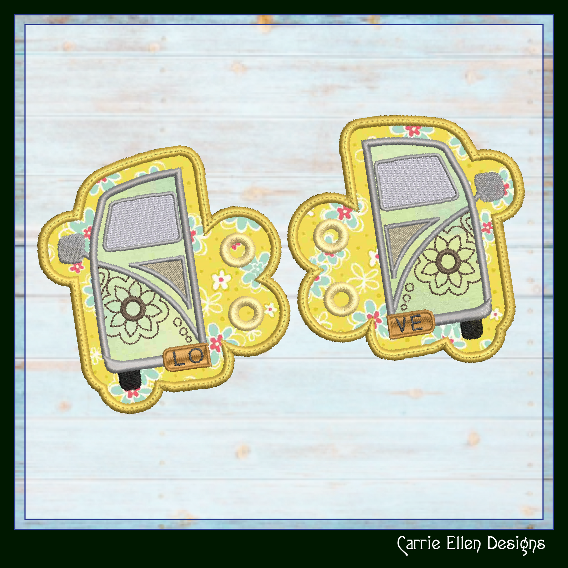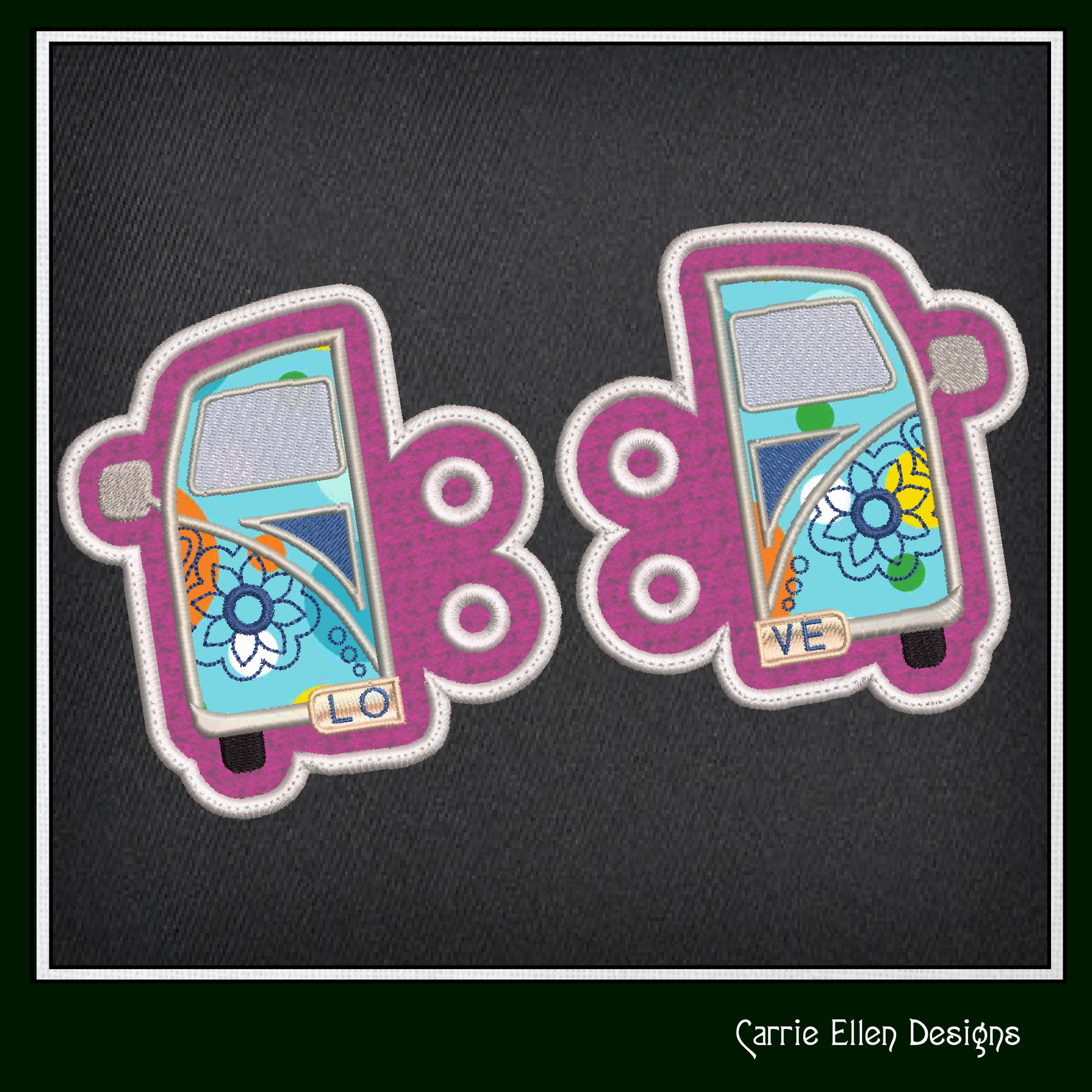 Love Bus ITH Shoe Wings Machine Embroidery Design – Retro Hippie Bus Wings for Shoes and Boots – 4x4 & 5x7 Hoop (2700)