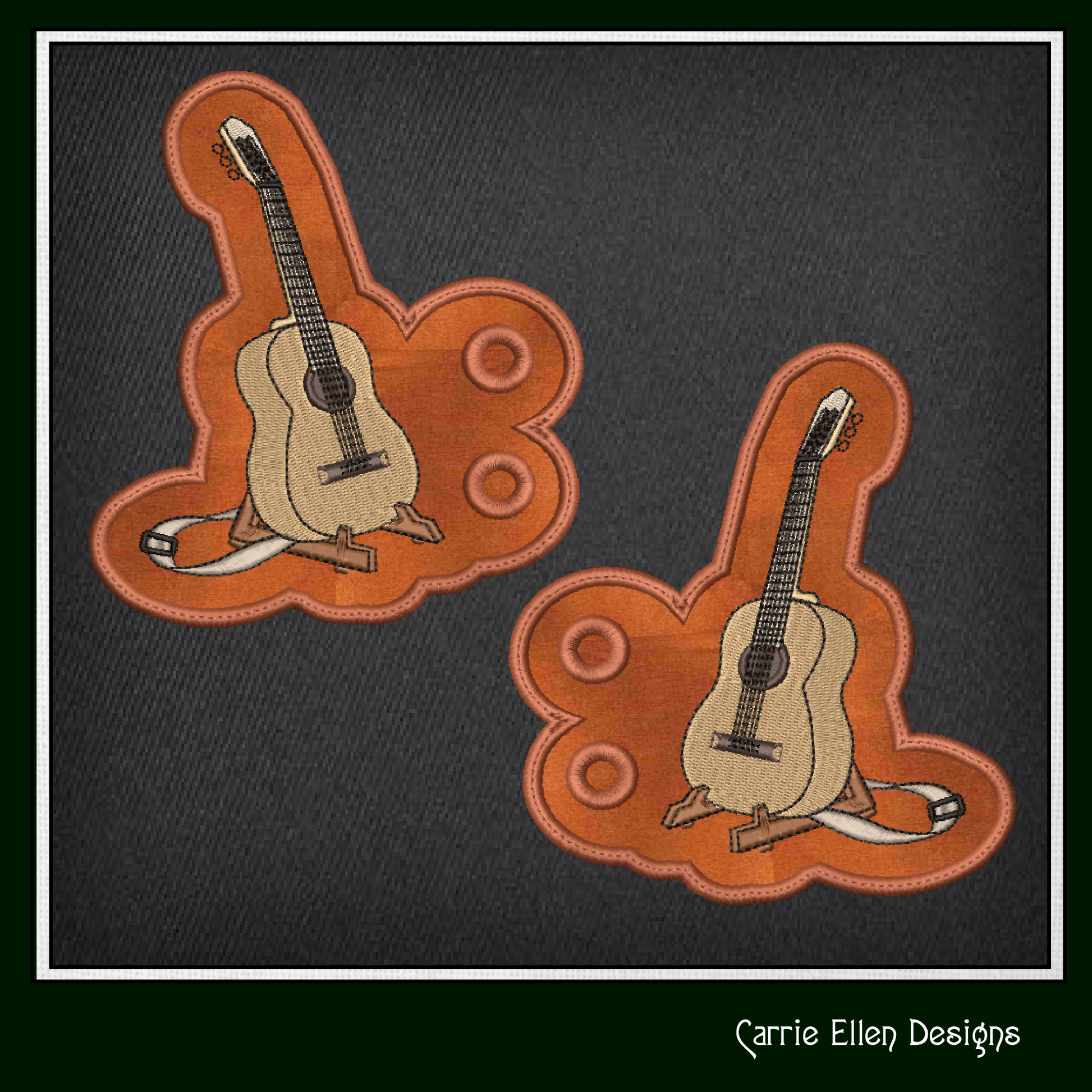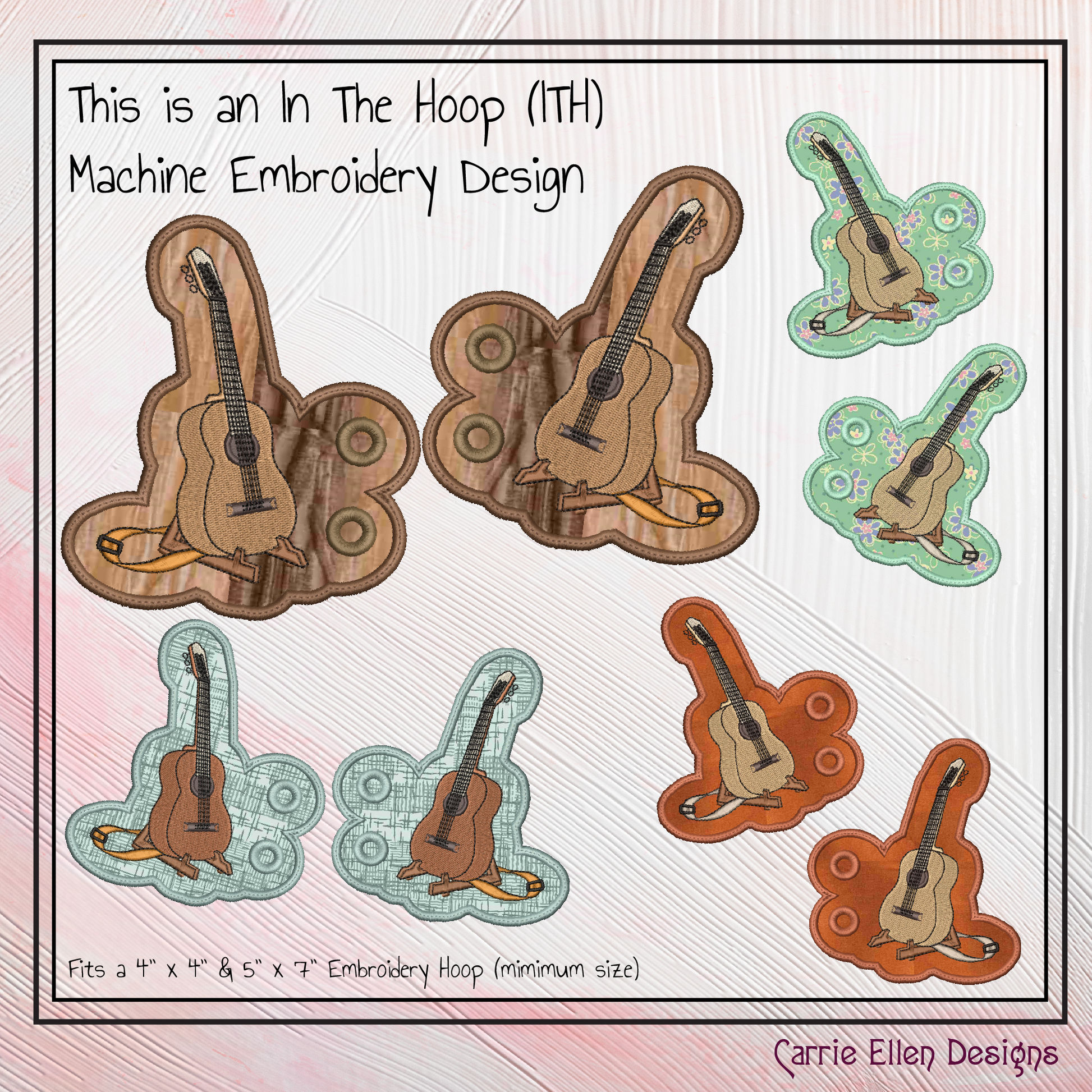 Guitar ITH Machine Embroidery Shoe Wings – Acoustic Guitar Stand In The Hoop Shoe Charm Design – 4x4 and 5x7 Hoop Sizes (2738)