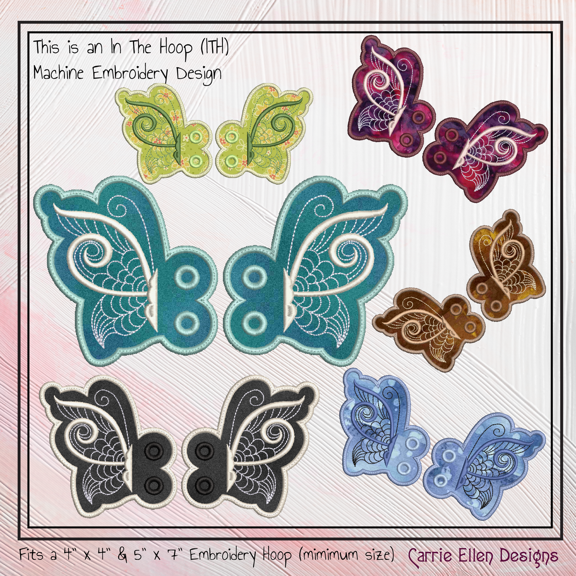 Transform your shoes into a bold and stylish statement with the Butterfly In The Hoop Machine Embroidery Shoe Wings design. This unique embroidery project combines the delicate beauty of butterfly wings with a touch of mystery, featuring butterfly bat wings perfect for adding a gothic twist to your footwear. Sized for both 4x4 and 5x7 hoops, this design is ideal for crafting shoelace charms for shoes and boots.