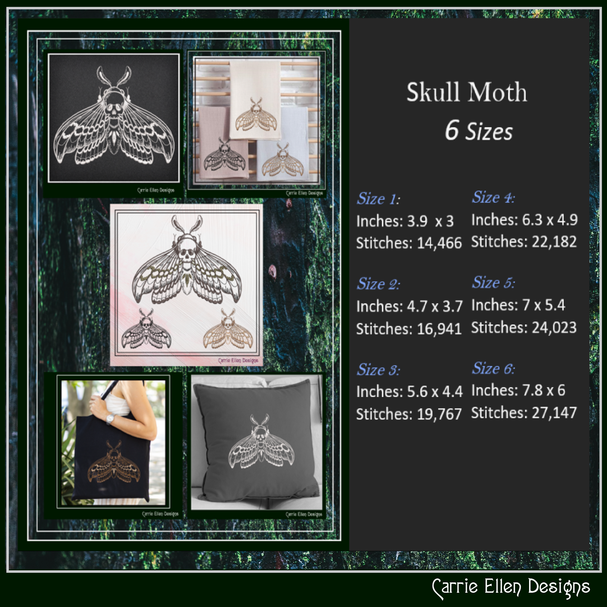 Skull Moth Machine Embroidery Design – Gothic Skull Moth Pattern, Dark Aesthetic Stitch File, 6 Sizes (2633)