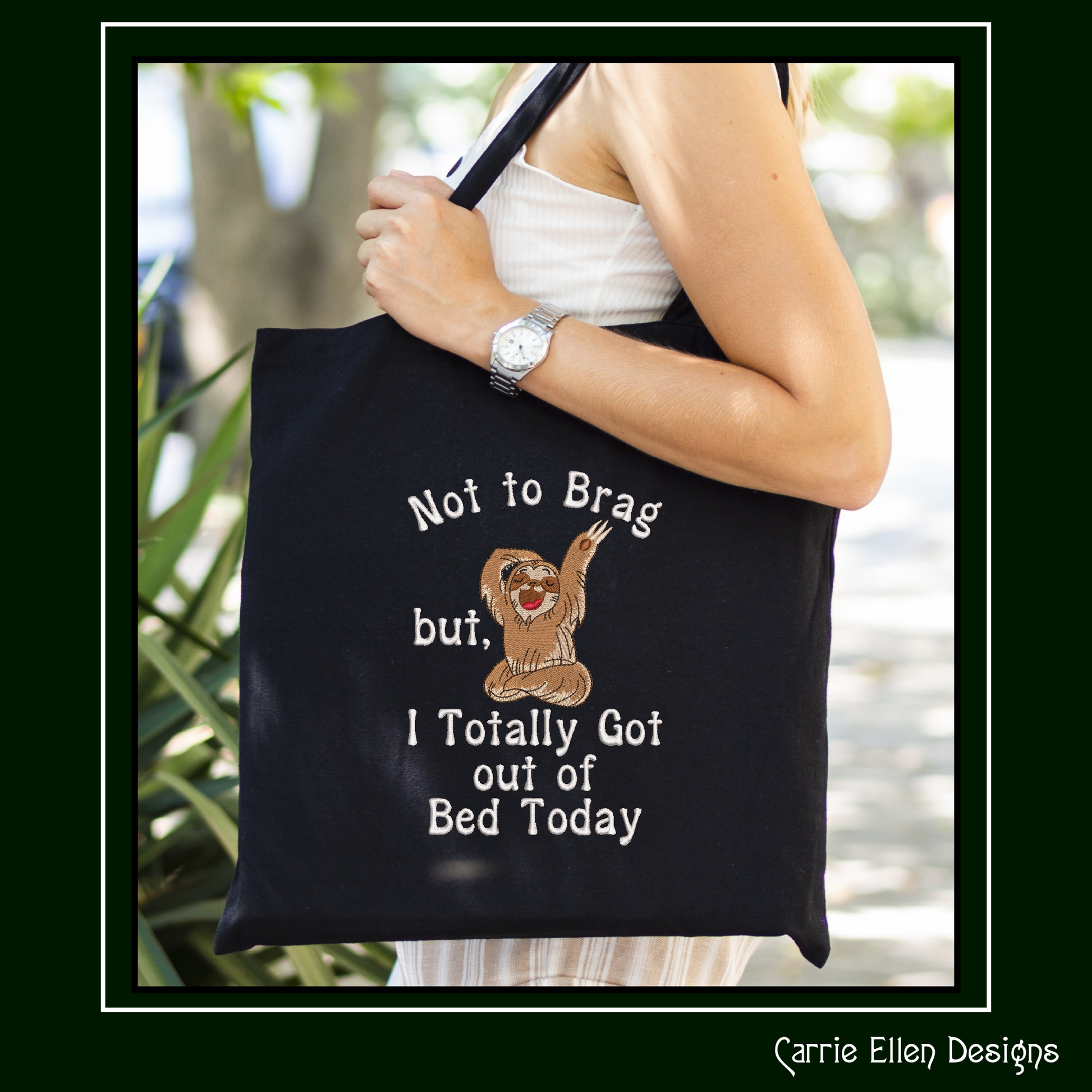 Funny Sloth Machine Embroidery Saying, Yawning Sloth Bragging Design, Totally Got Out Of Bed Sassy Quote, 6 Sizes (2355)