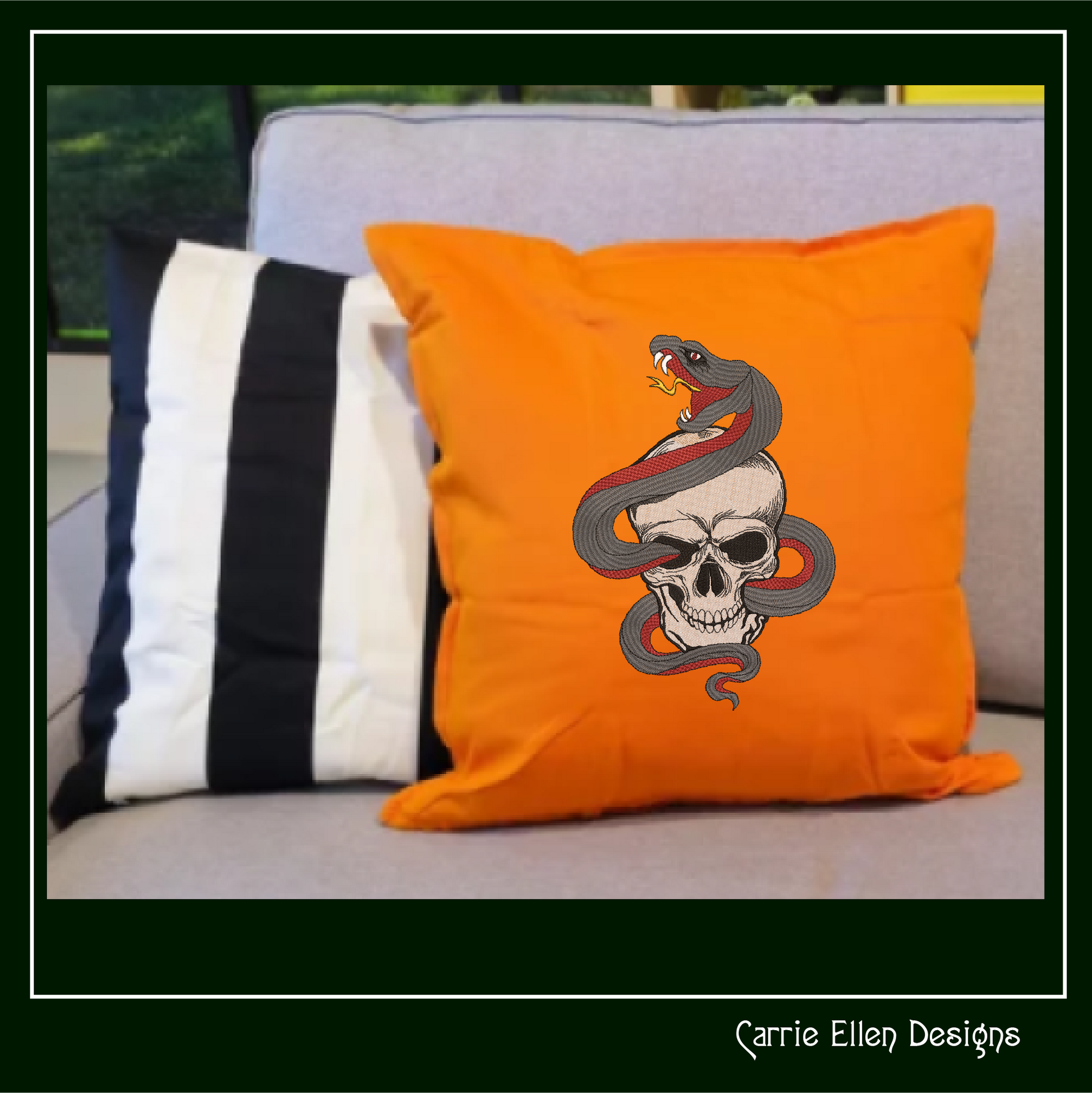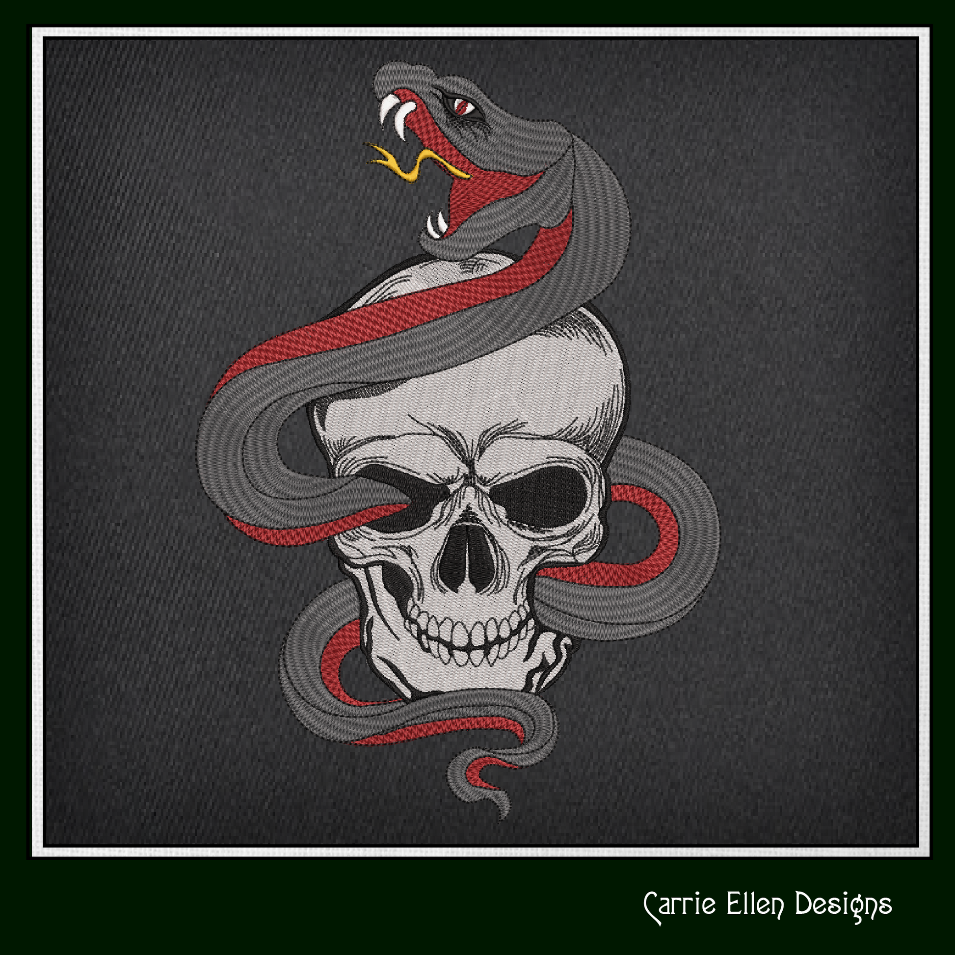 Snake Entwined Skull Machine Embroidery Design | Gothic Skull & Serpent Pattern | Dark Art Embroidery | 6 Sizes (1927)