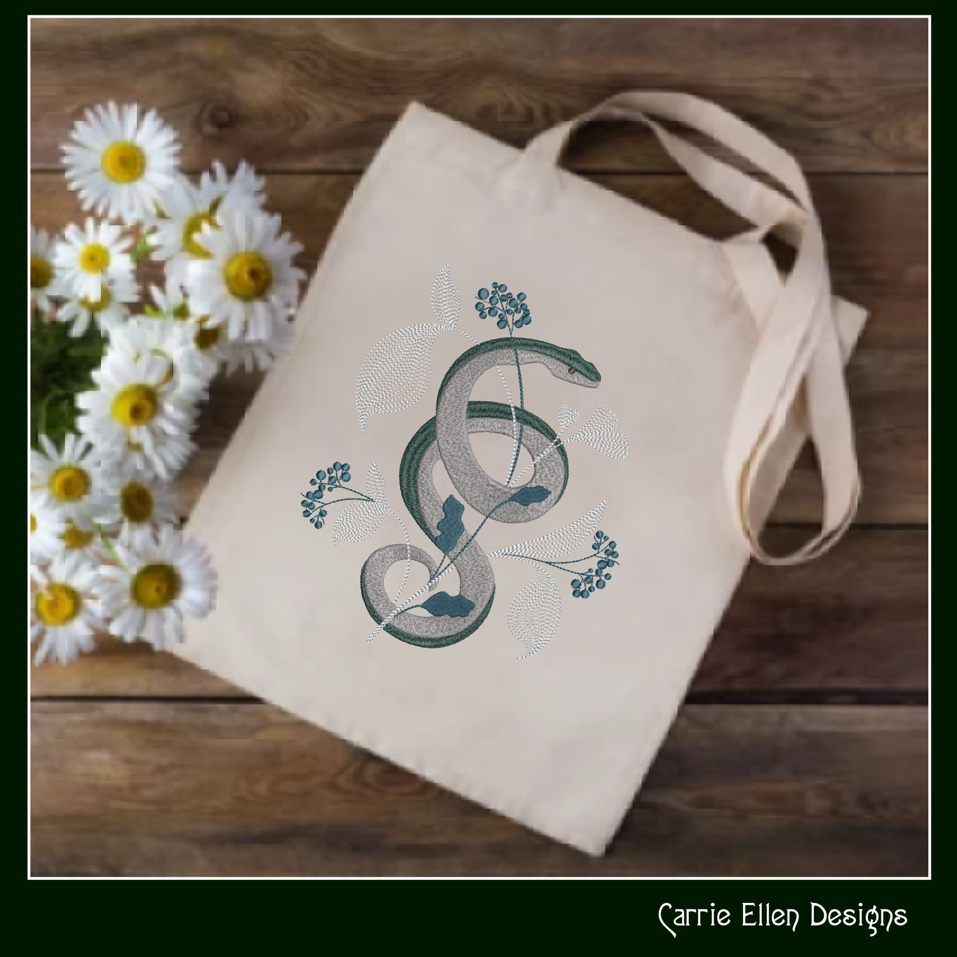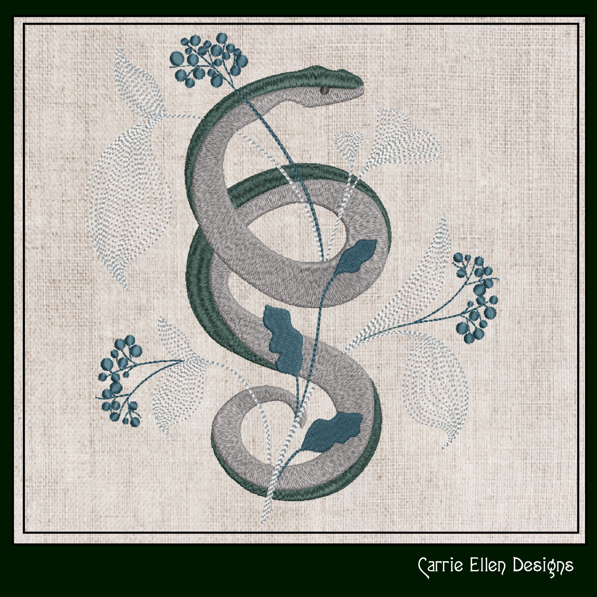 Add a mystical touch to your embroidery projects with this decorative snake design, gracefully entwined with leaves and flowers. This intricate pattern blends the beauty of nature with the symbolism of the snake, creating a unique and eye-catching design. Perfect for enhancing clothing, home décor, or accessories, this design brings a bold yet elegant vibe to any project.