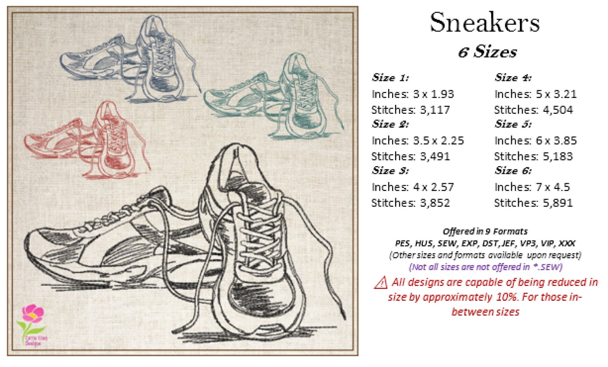 Sneakers Machine Embroidery Design Sketch – Running Shoes Embroidery Pattern, Track and Field Sports Design, 6 Sizes (0527)